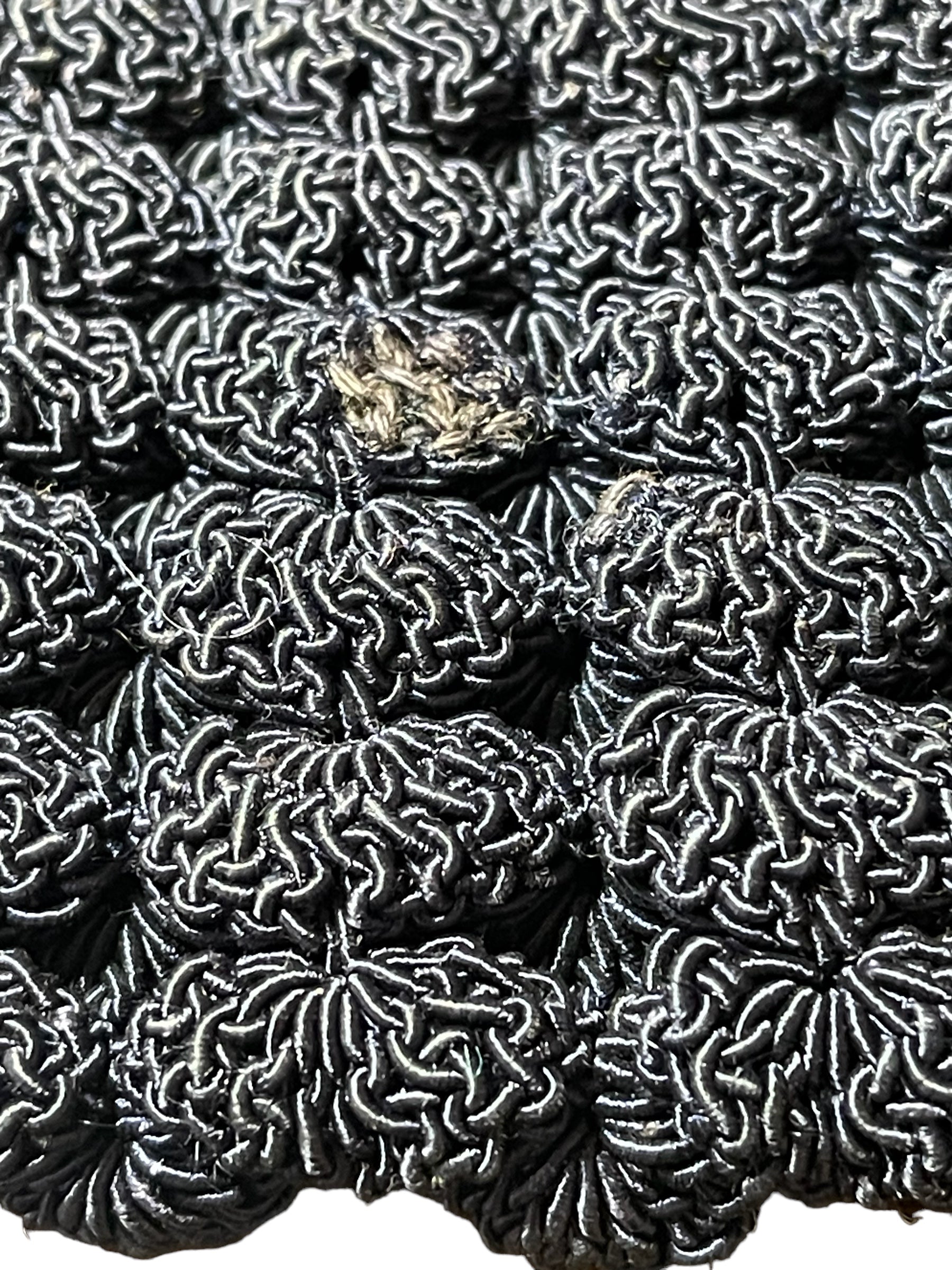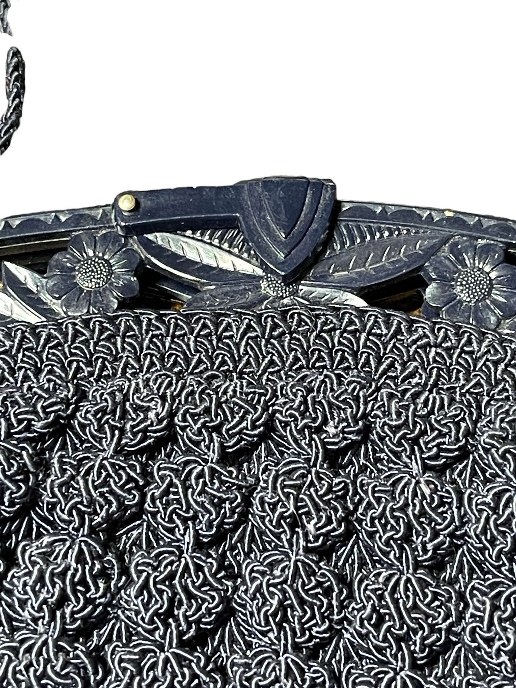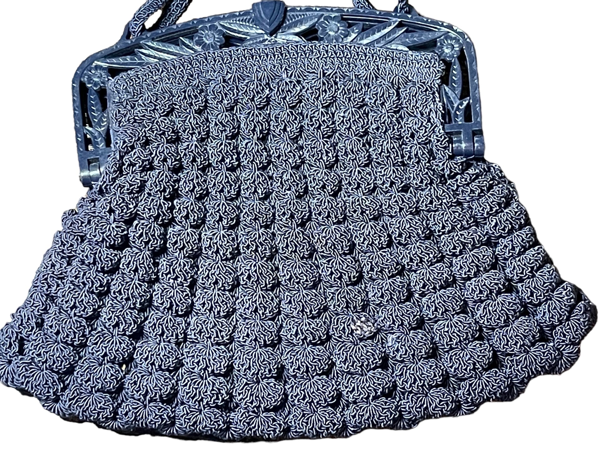Keep your essentials organized with our 40s Navy Cord Purse. This small purse features a durable corded strap and a plastic top edge to keep your belongings secure. Its satin interior adds a touch of luxury. Compact yet functional, it's perfect for on-the-go style.