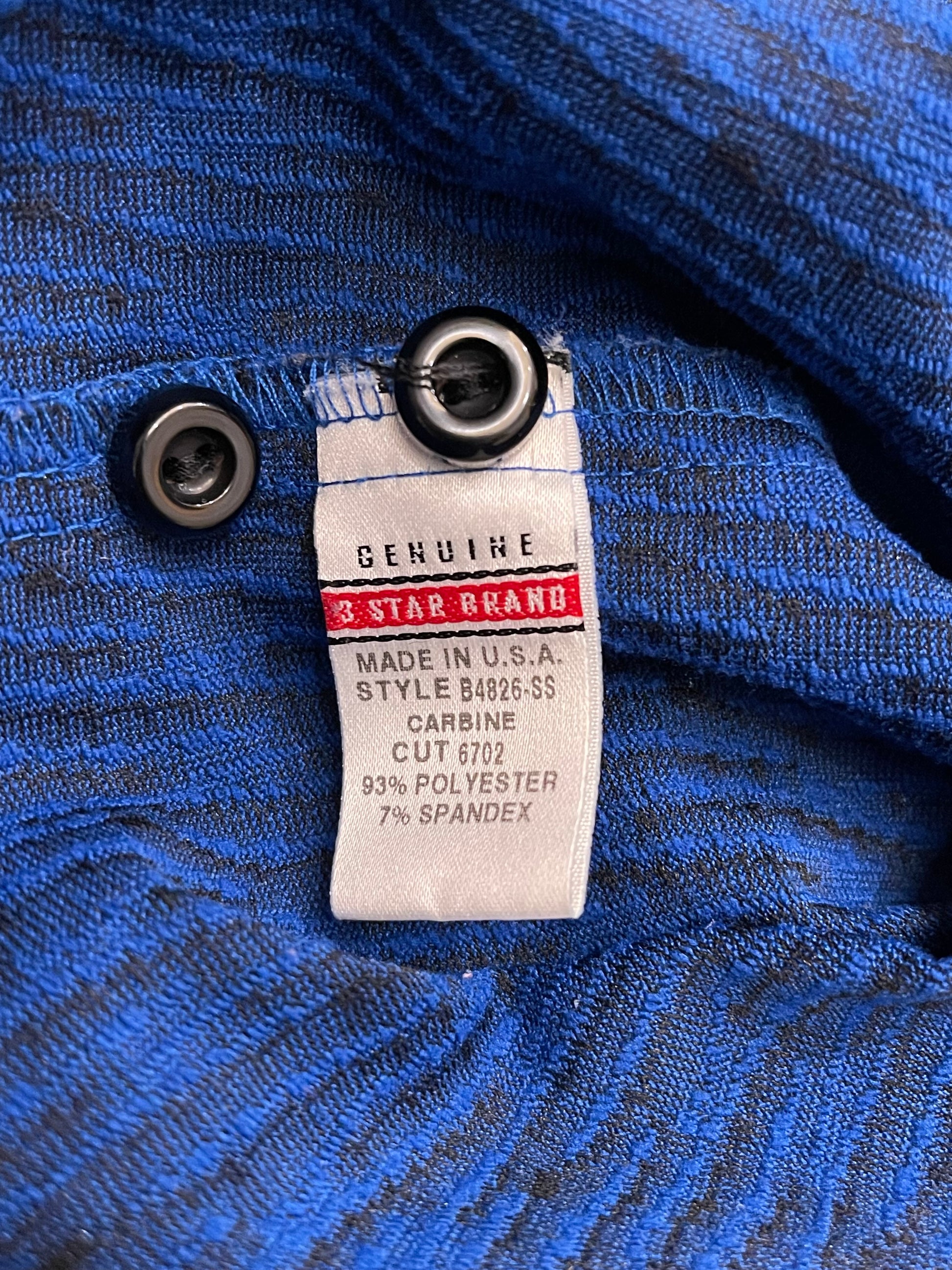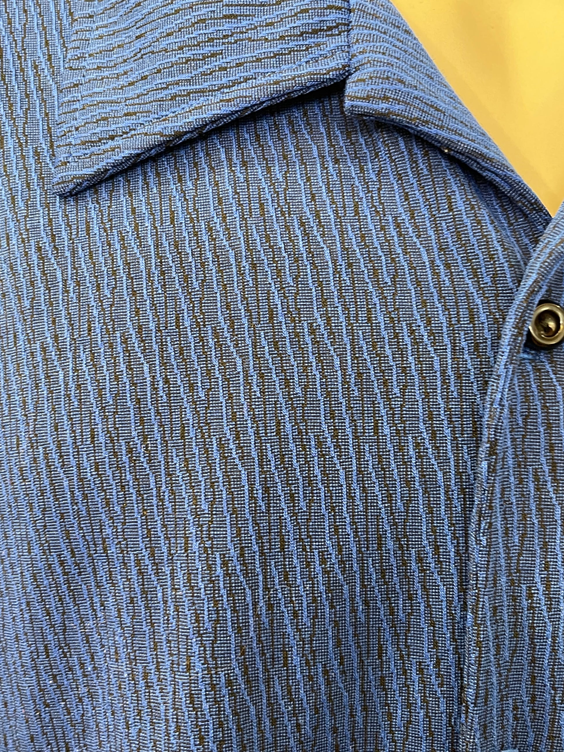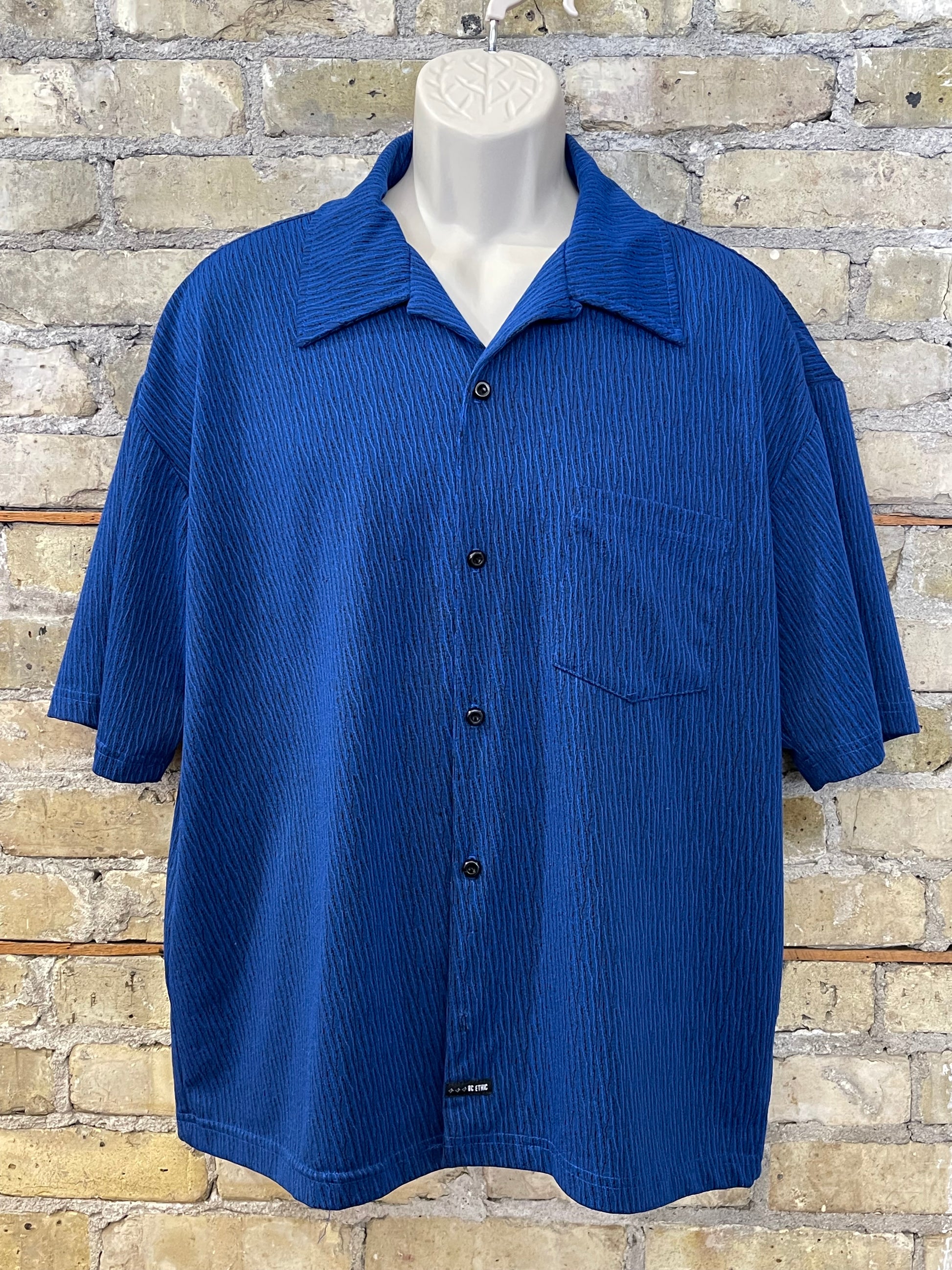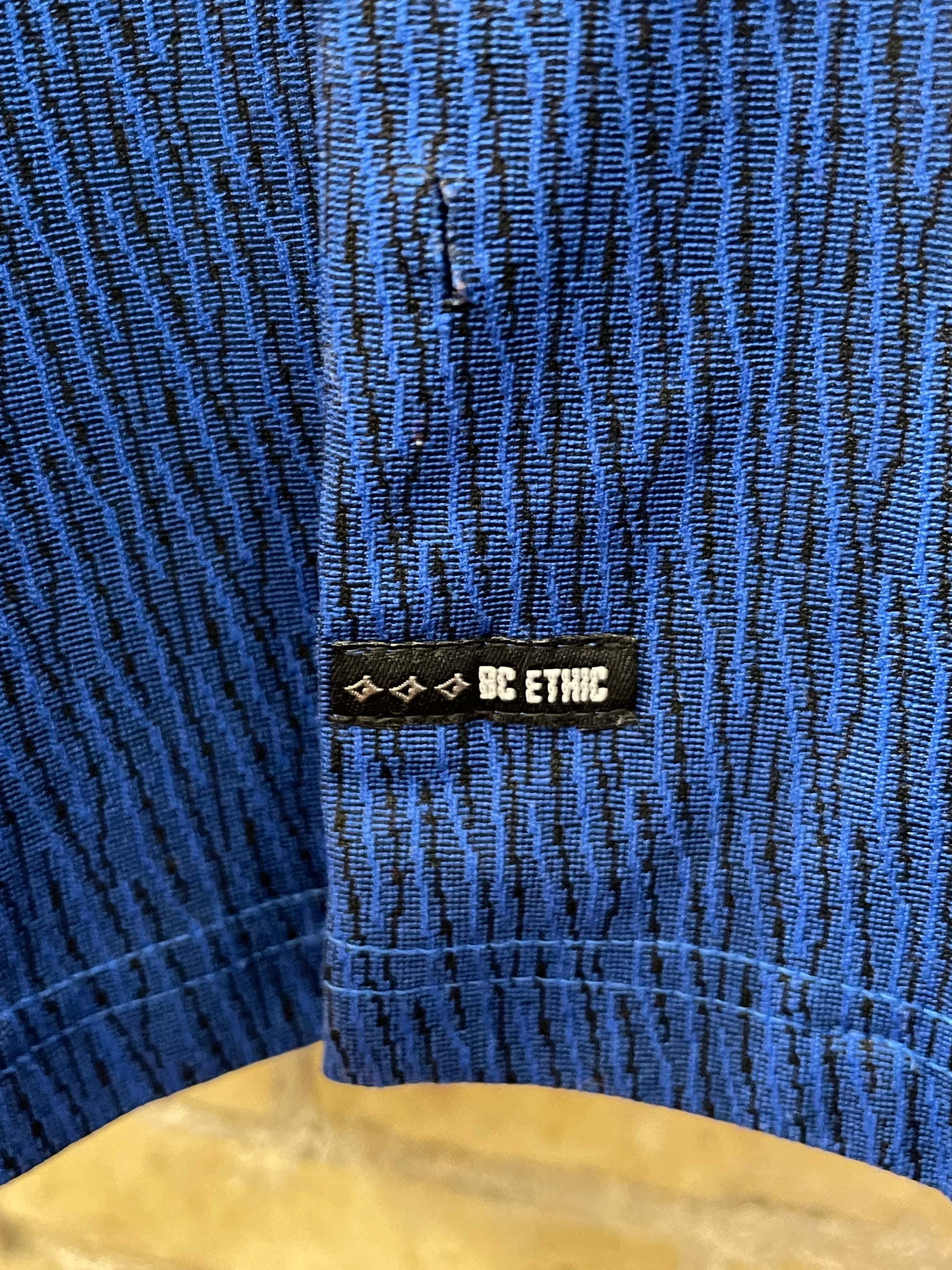 This 80s BC Ethic shirt features a bold and modern bright blue and black animal print. Perfect for adding a touch of personality to any outfit, this shirt effortlessly combines style and comfort. Stay on-trend and stand out with the eye-catching print of this shirt.
