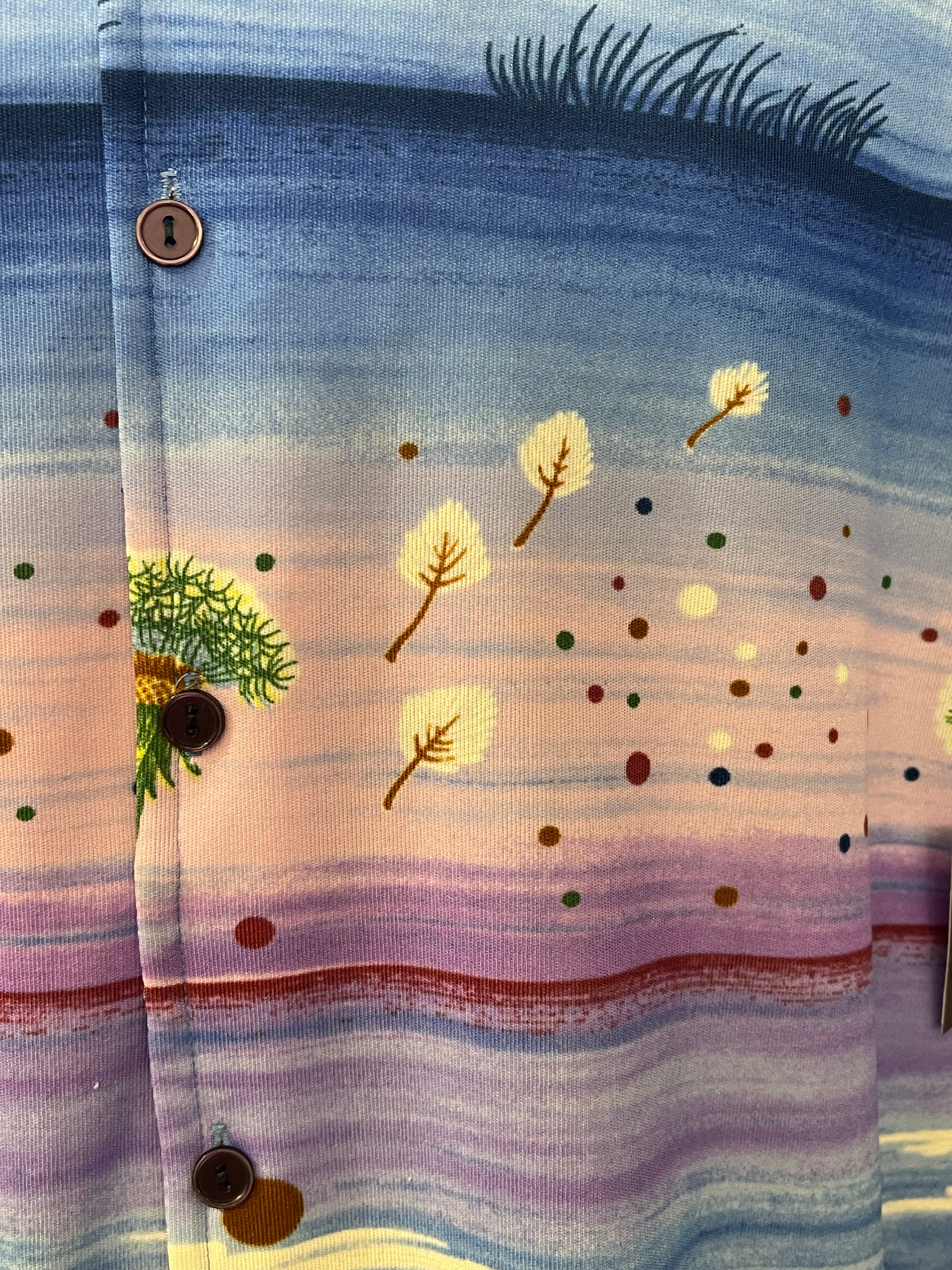 "Unleash your wild side with our Amazing Dandelion Print Shirt! Vibrant purples and blues will make you stand out while the dandelion blowing in the wind design adds a touch of whimsy. Let this shirt be your statement piece!"