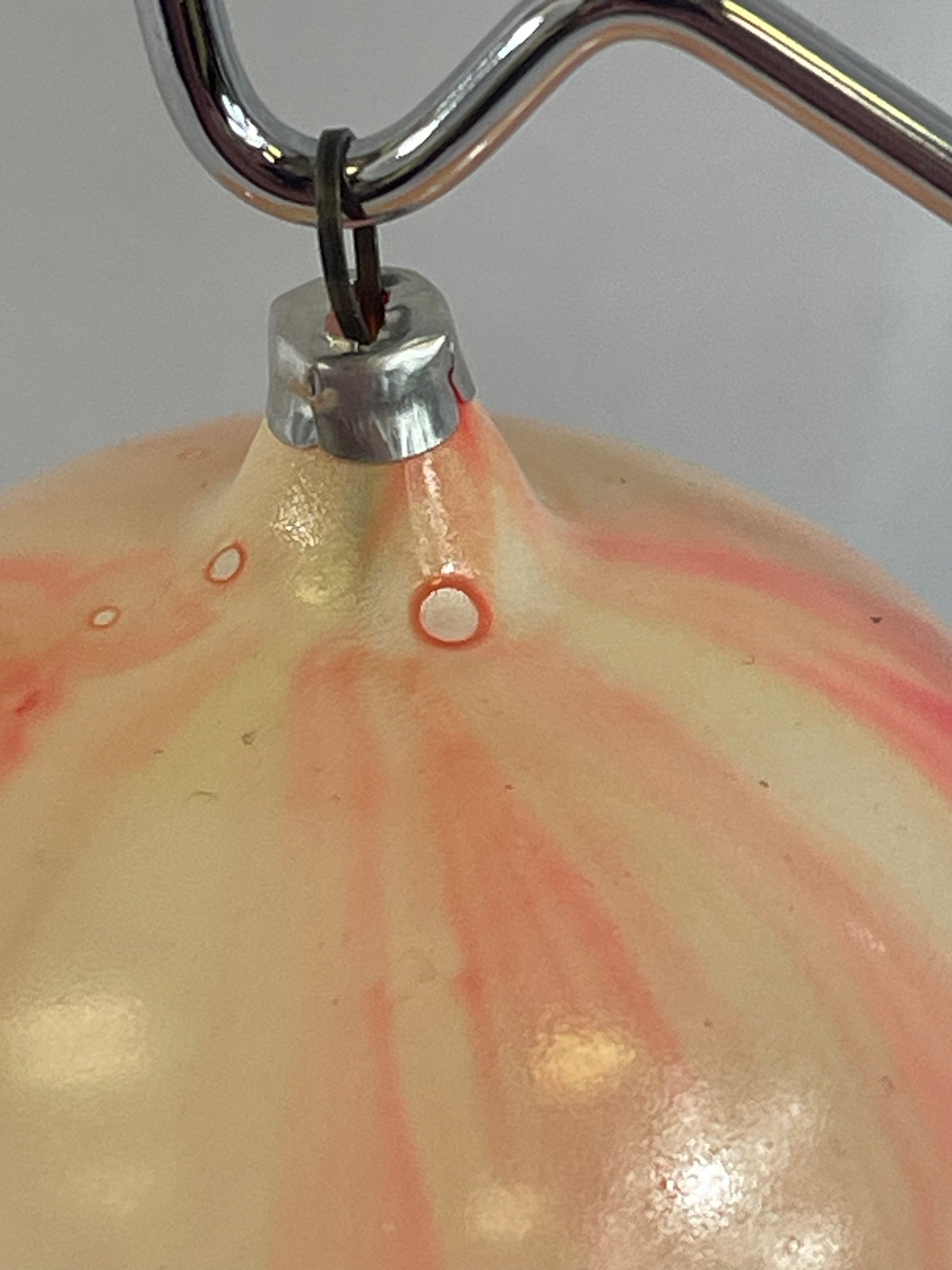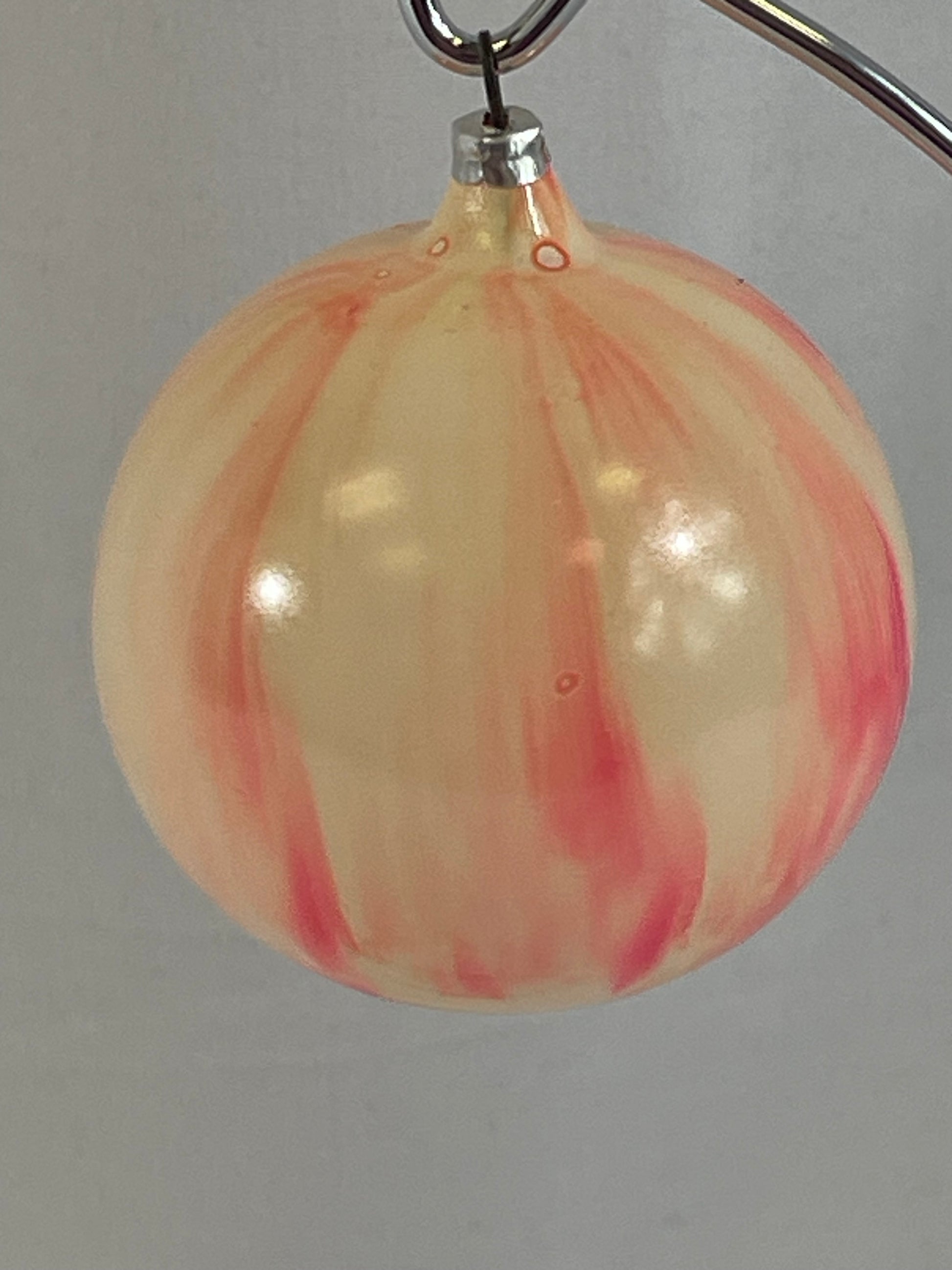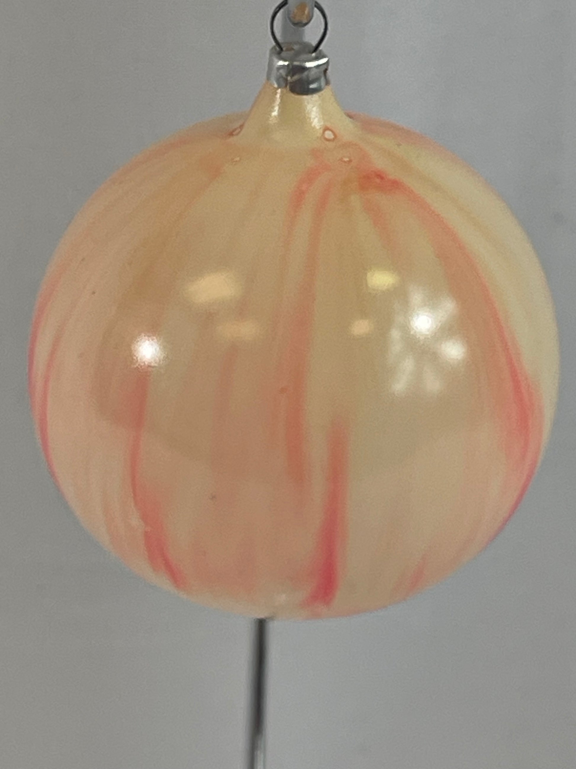 The balls themselves are unsilvered, very smooth and shiny.  The caps are also shiny and in good condition. The colors are white with pinks.