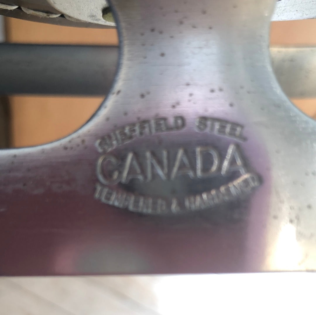 Black leather ice skates. No laces. Excellent condition. Made in Canada. Men’s size 9.