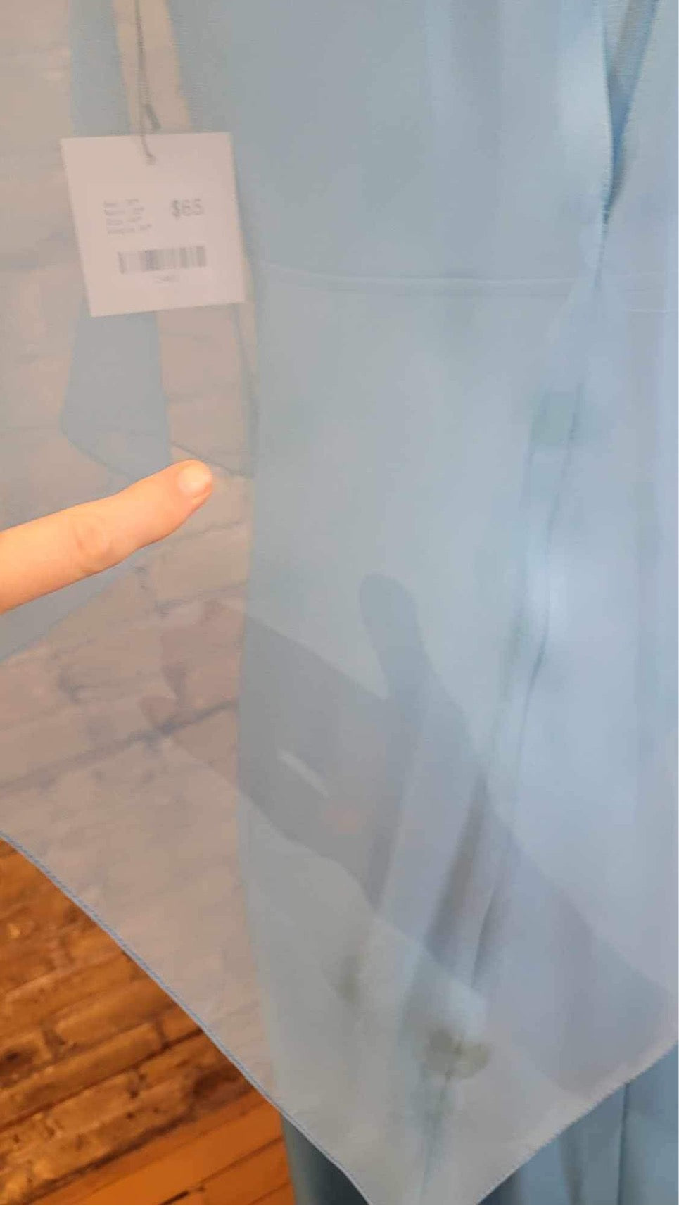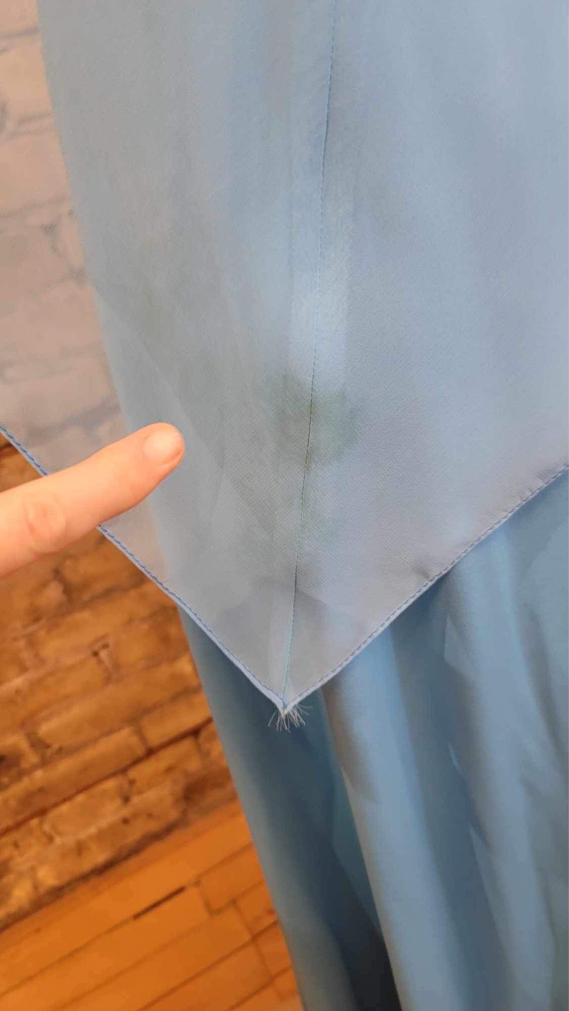 "Channel your inner flower child with this Blue 70s Maxi Dress. The detachable sheer cape features a unique pearl and beaded bodice, adding a touch of elegance. (Cape may have faint stains, but we're all about embracing imperfectly perfect vintage vibes.)"