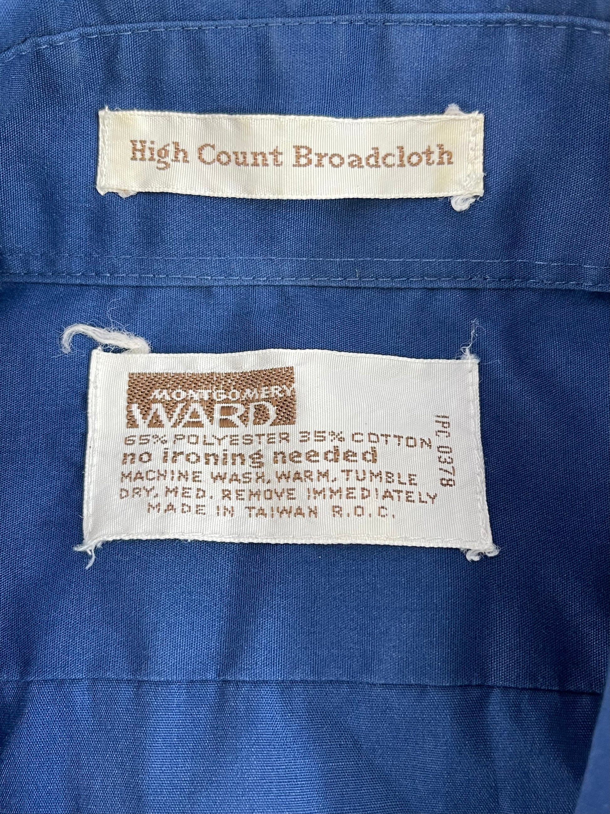 This Montgomery Ward short sleeve shirt is in good vintage. One collar tip shows wear. It’s perfect for casual or business.