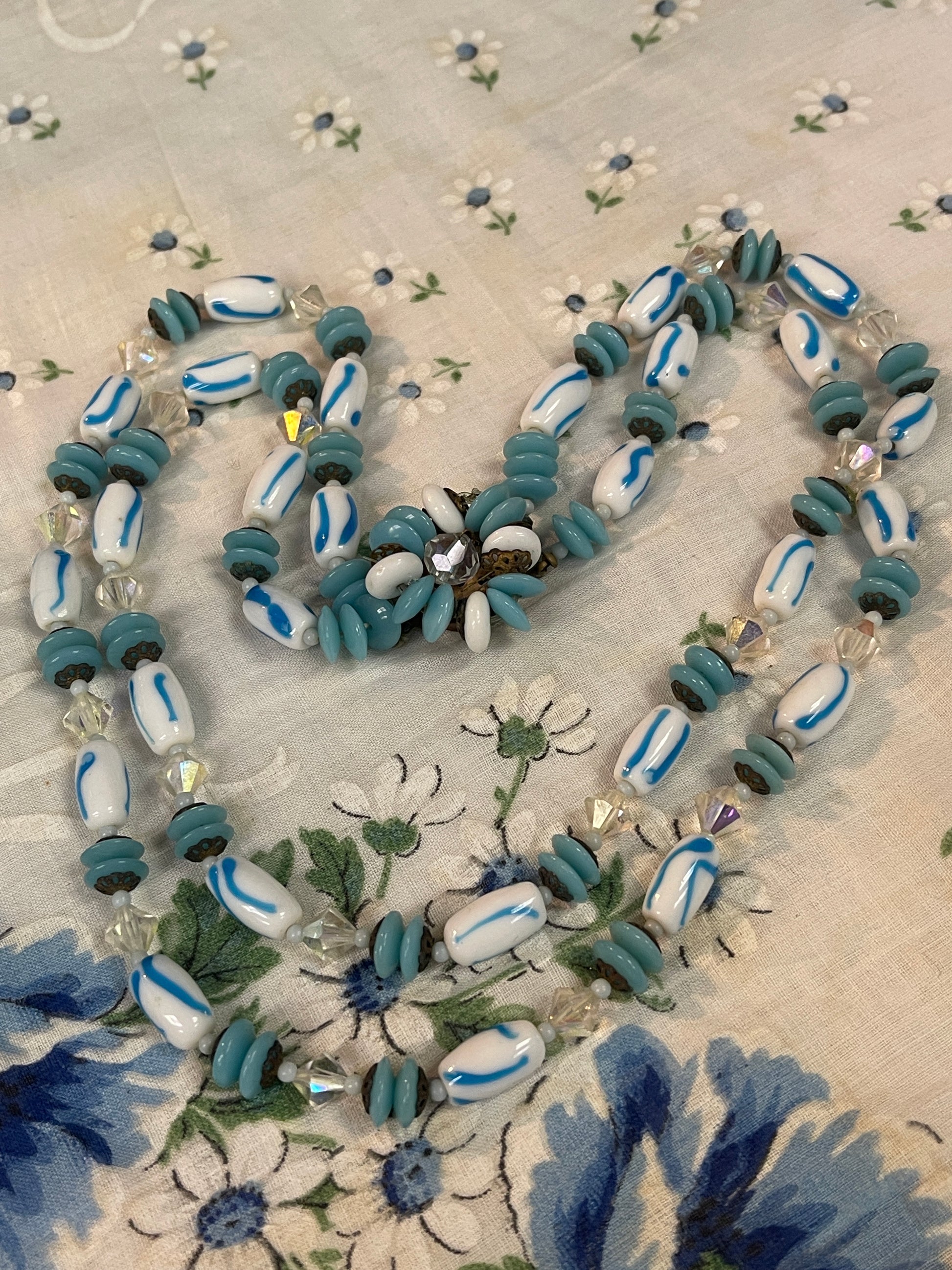 Playfully styled double strand necklace! Features a closure that can be worn to the front or back! It would be perfect paired with a summer day dress! 18” length