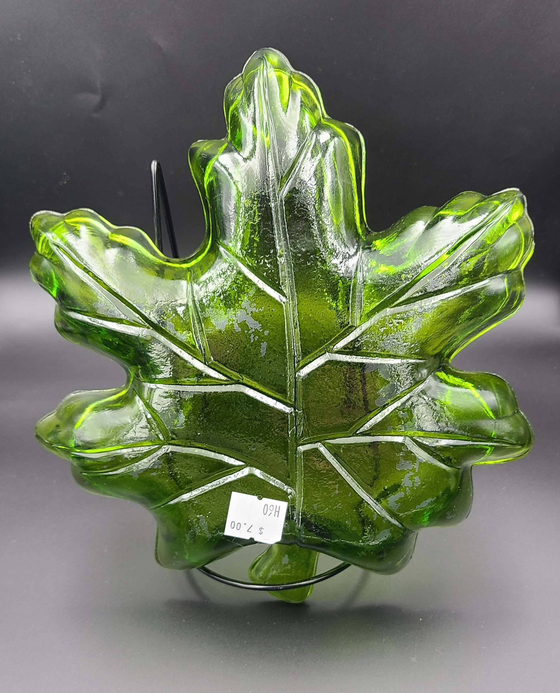 Clear Green Glass Maple Leaf Dish