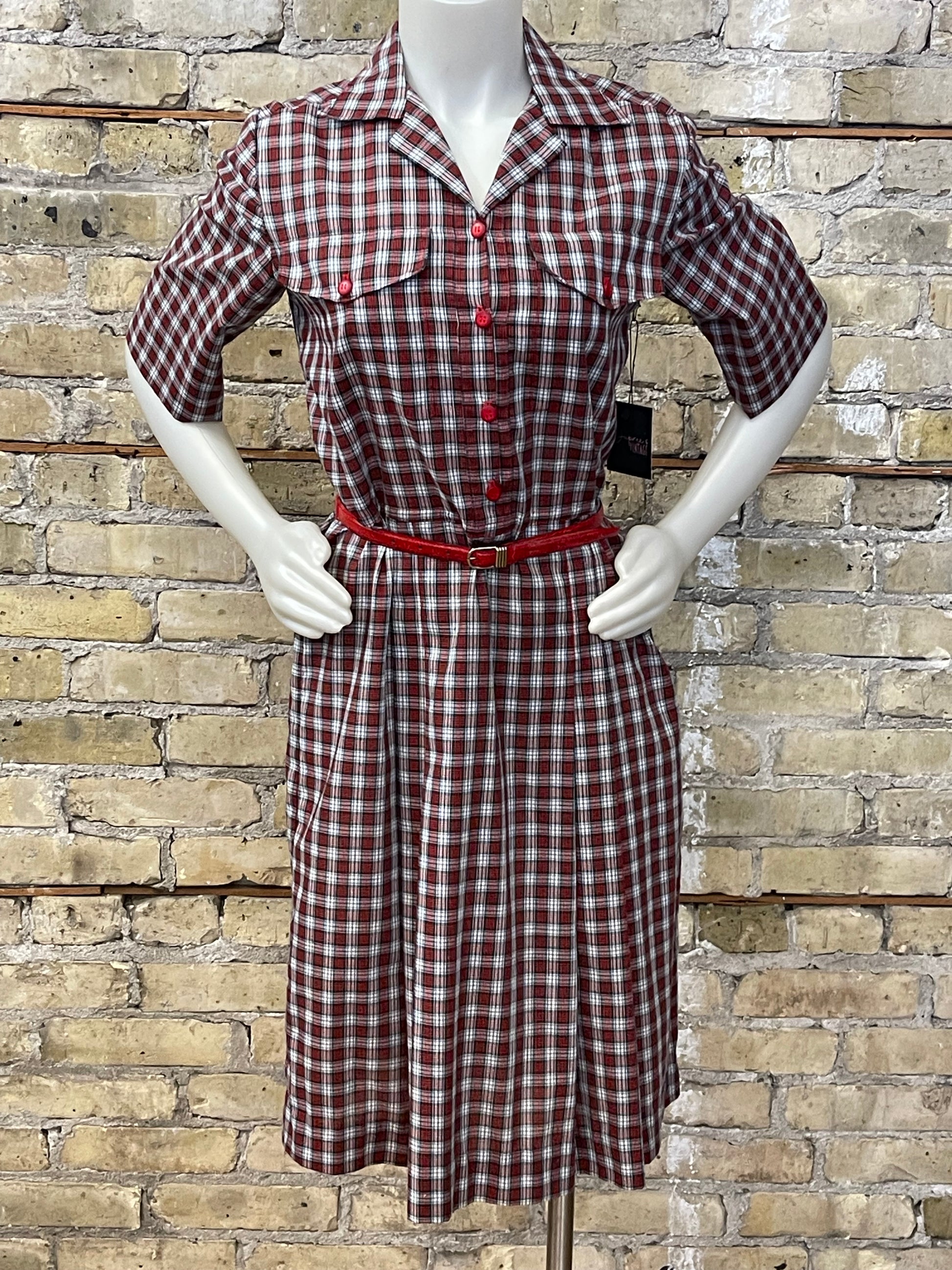 Stay stylish and comfortable all day long with our Cotton Plaid Day Dress. Its classic red and green plaid design adds a touch of charm, while the chest pockets provide functionality. Perfect for a casual day out, this dress is sure to become a staple in your wardrobe.