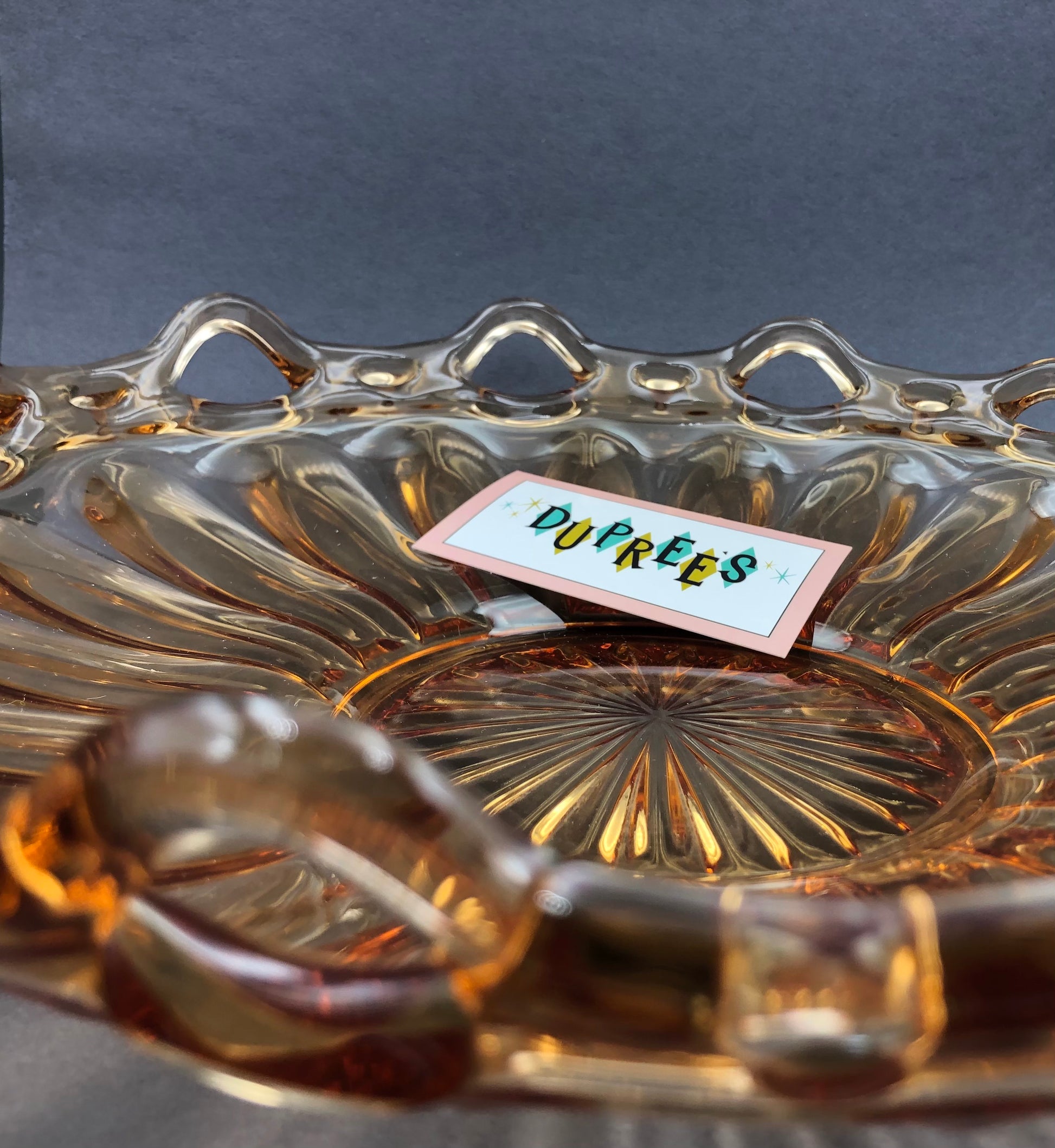 Fostoria Colonial Prism Amber pattern with lace edge.
