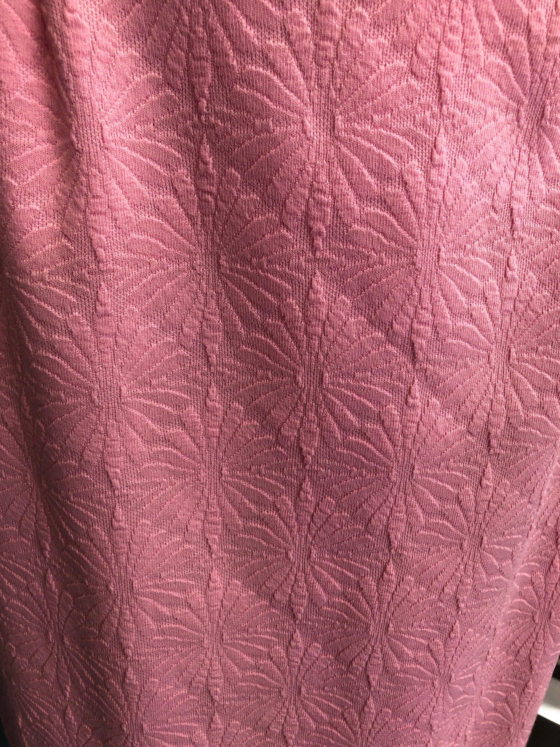 Pink full length skirt with embossed pattern in the material.  Zip and hook back.