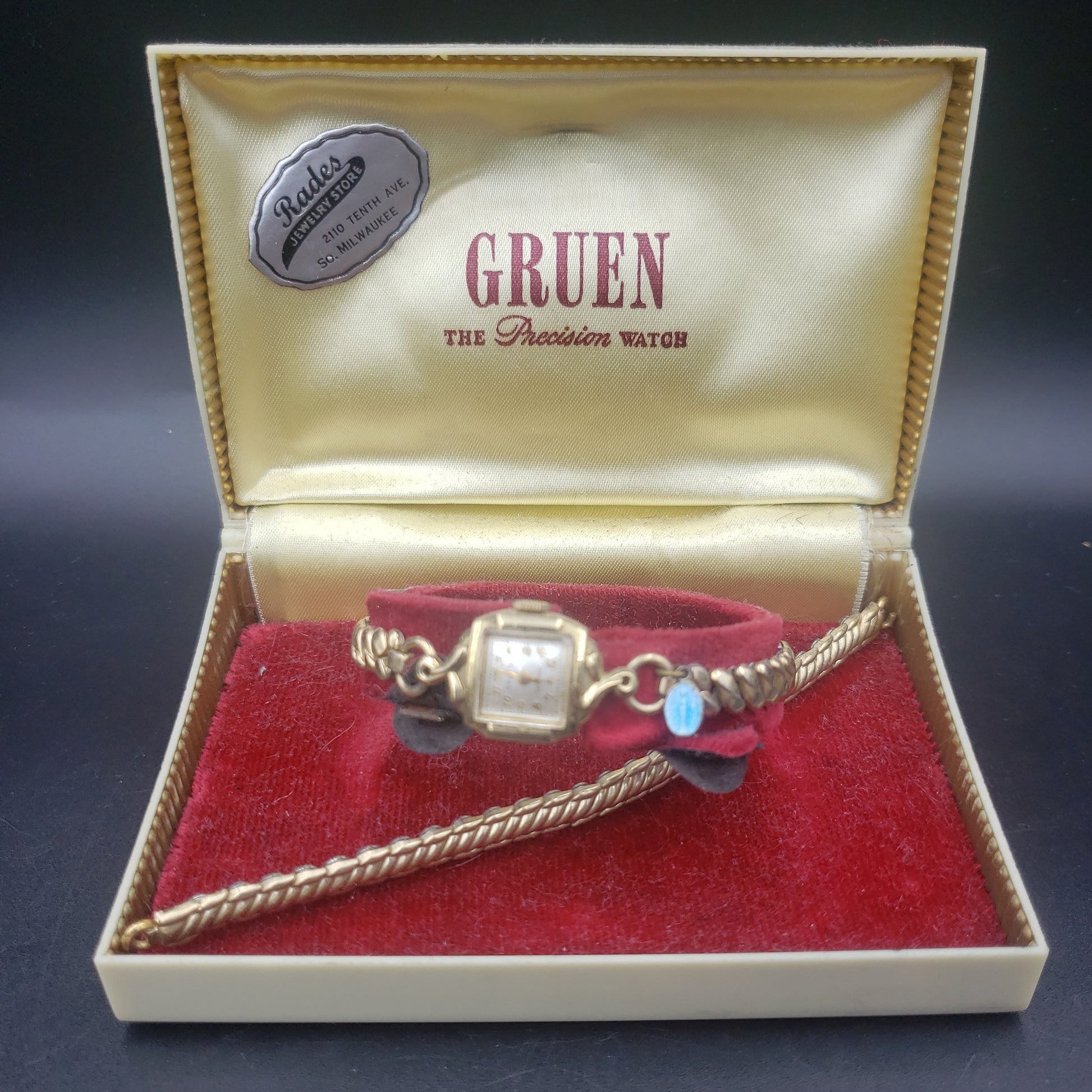 Green women's watch with box and extra band. Watch bands are 5" long.