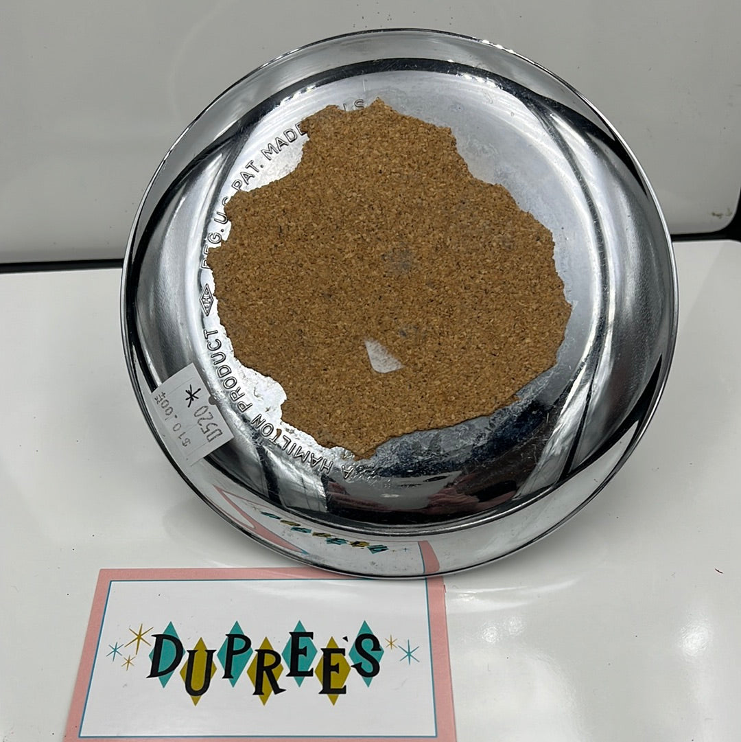 Metal ashtray with two pelicans on a perch with their mouth open. You can place the cigarette in their mouth. Cork bottom slightly worn.