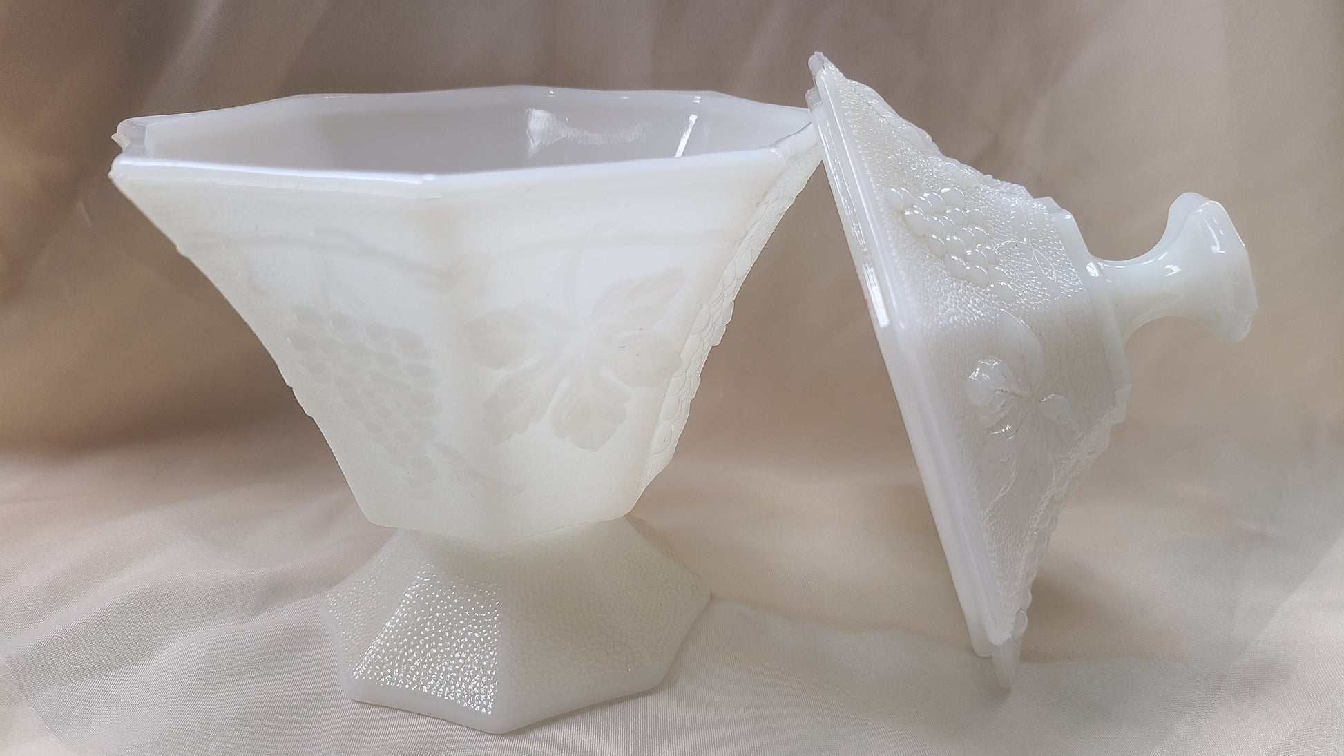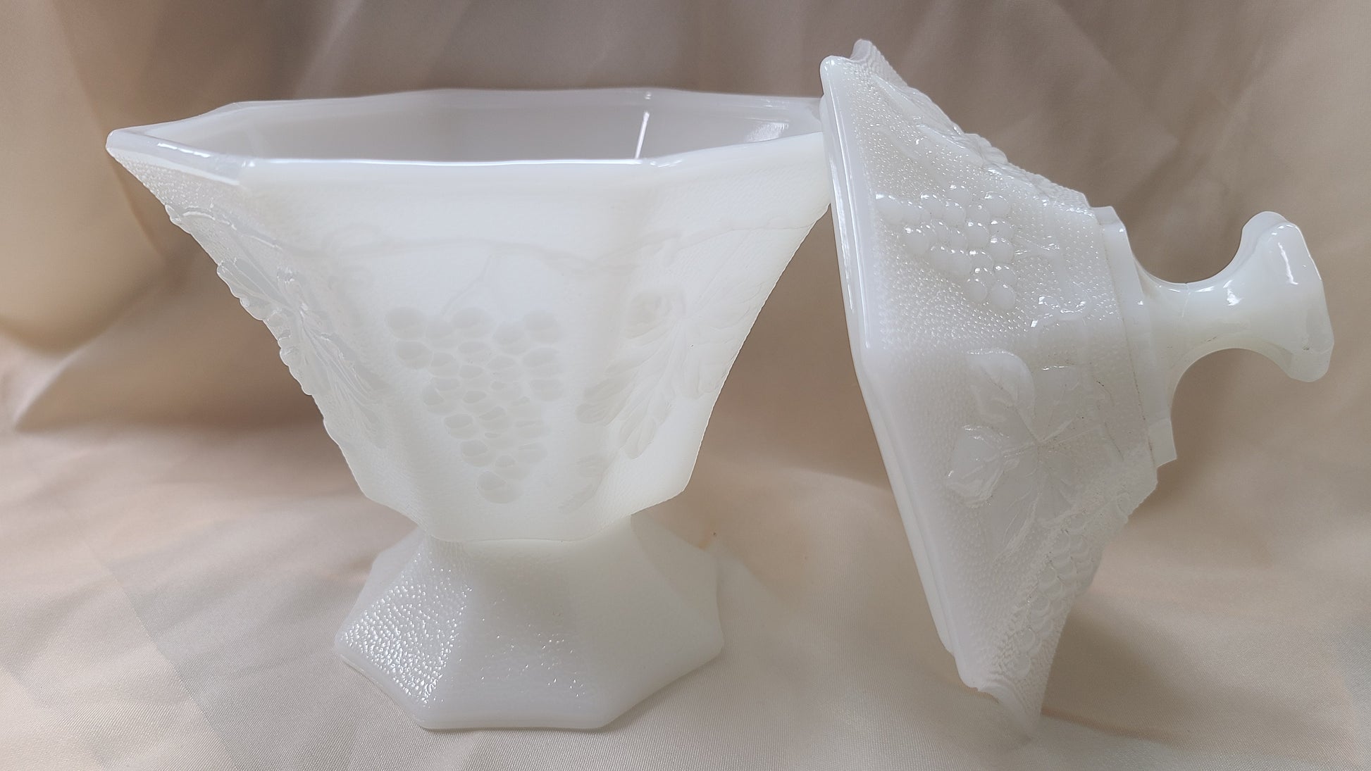 Indiana Milk Glass Harvest Grapes Candy Dish