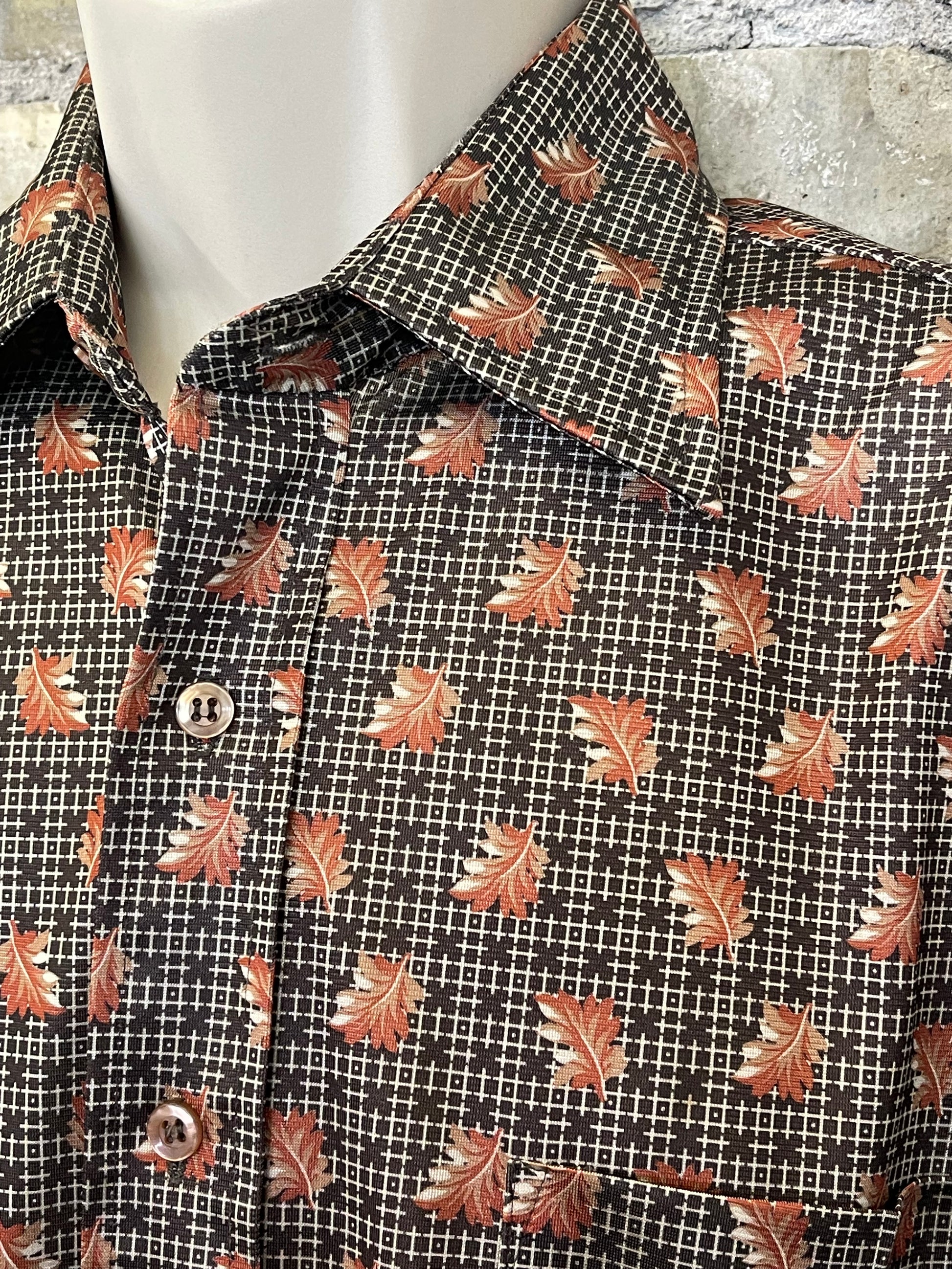Add a touch of vintage to your wardrobe with our Kingsport 70s Shirt. With its autumn leaf design featuring warm tones of brown and beige, this shirt is perfect for the upcoming season. Made from high-quality materials, it will provide both comfort and style.