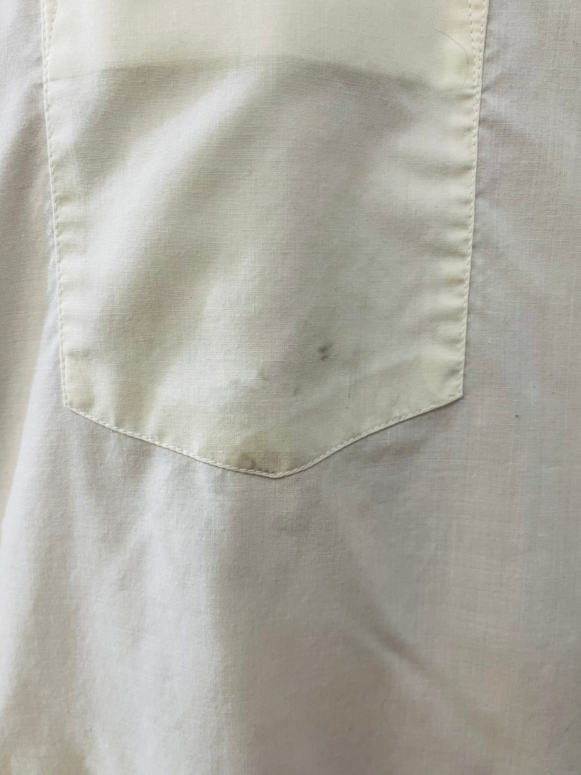 The Kingsport Short Sleeve Shirt in XL offers a versatile off white color and a functional pocket. Constructed with high-quality materials, it provides comfort and durability for everyday wear. Note: slight staining on pocket