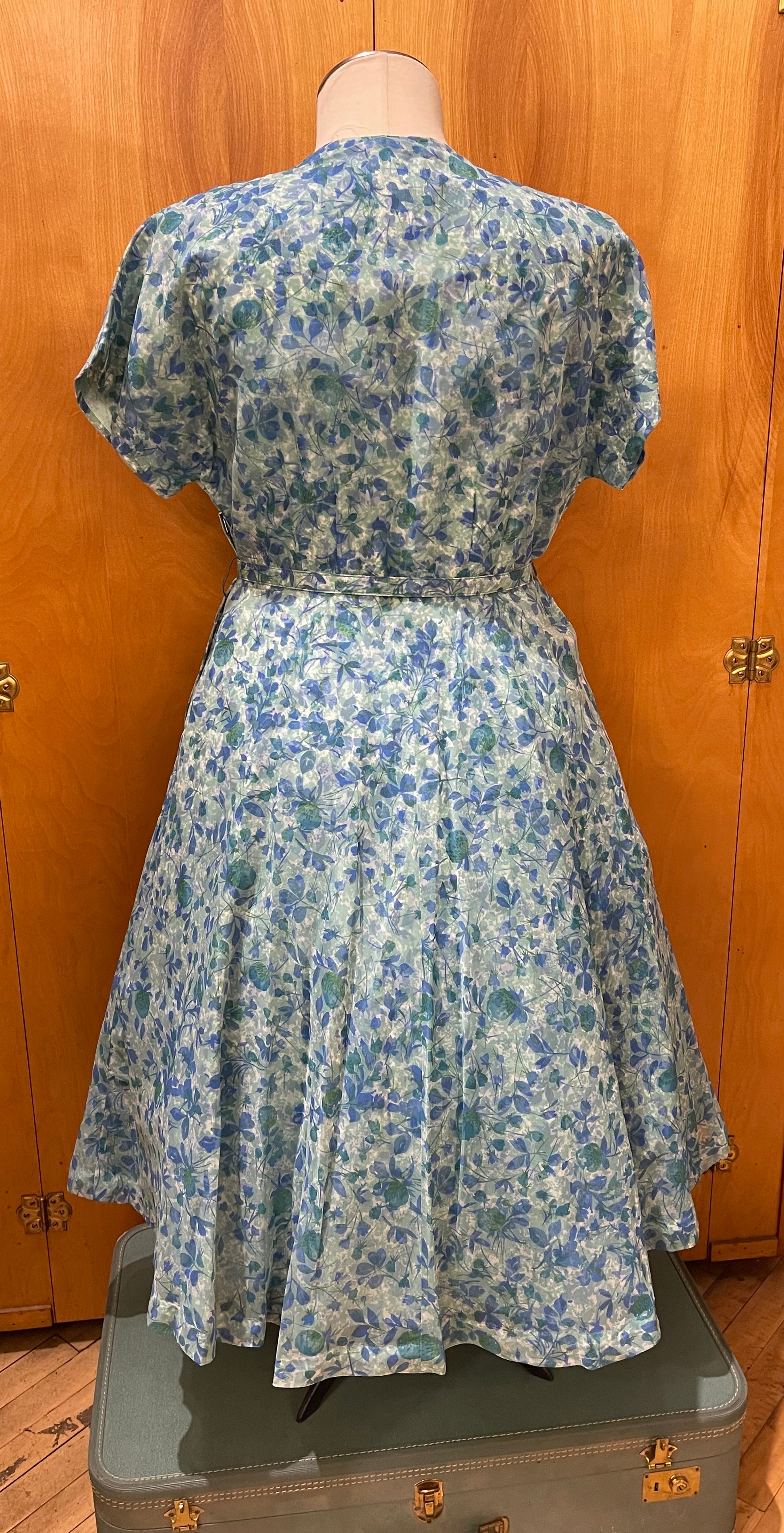 Leslie Grey 50s Blue Floral Party Dress