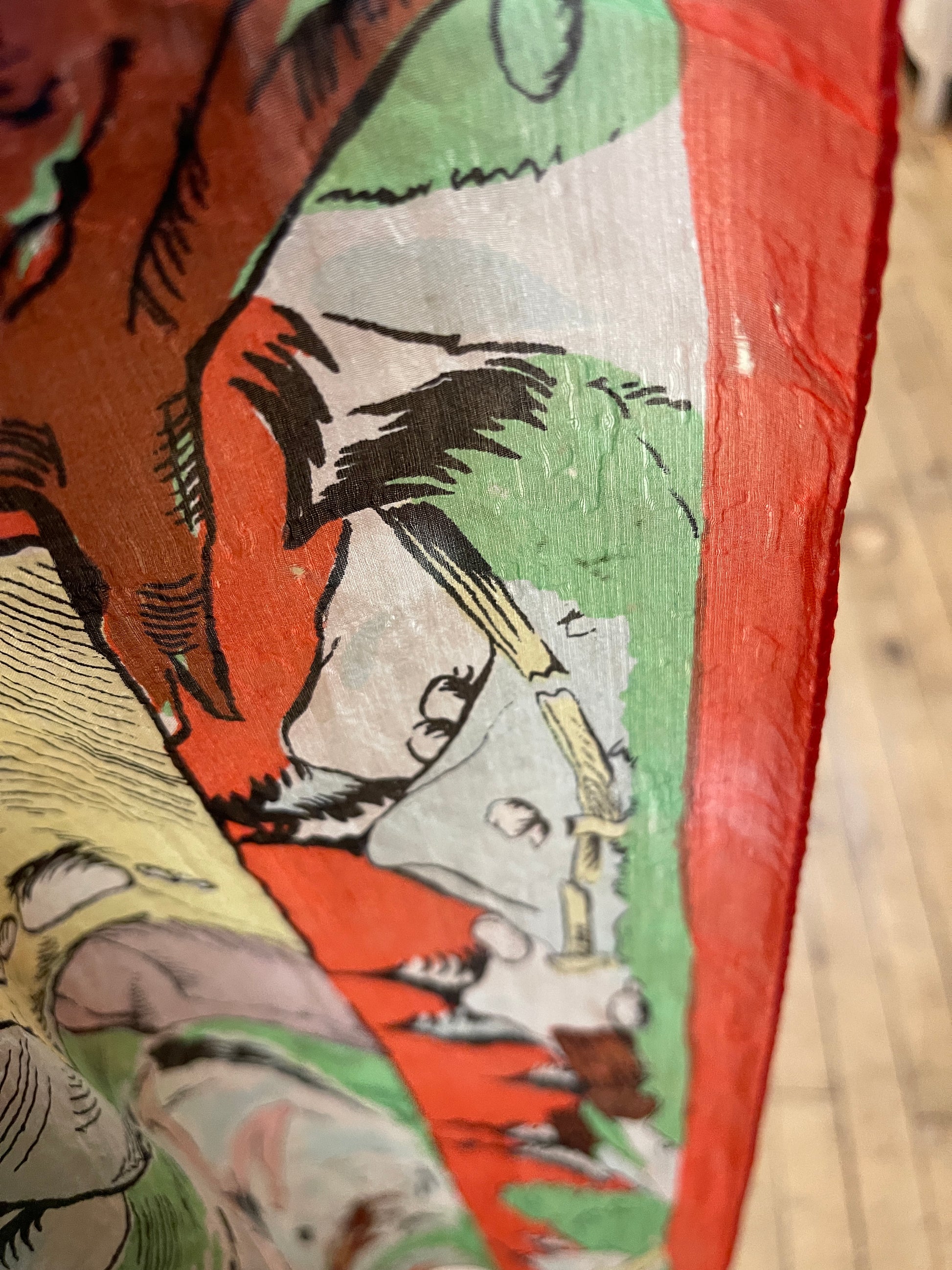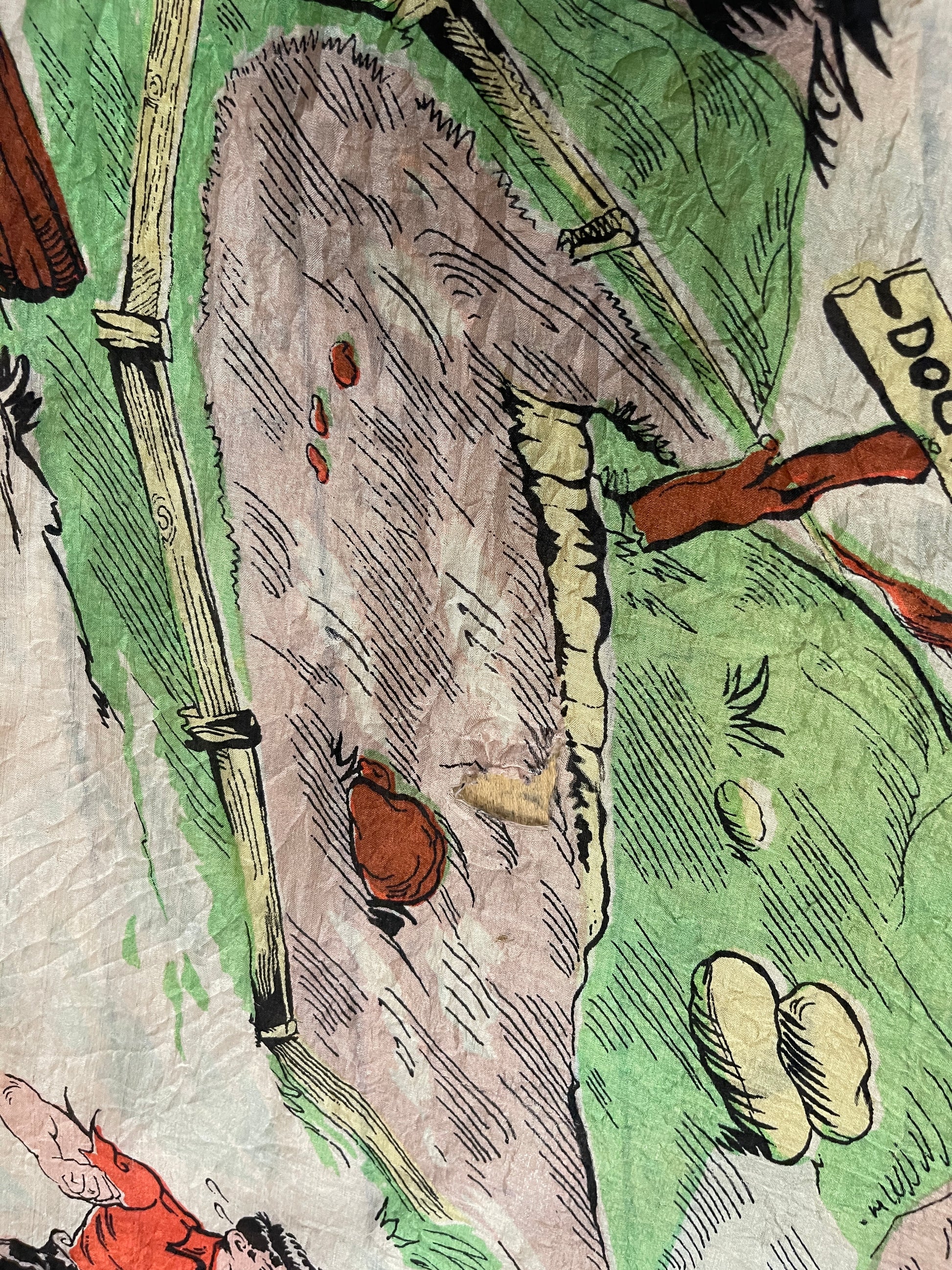 Add some fun and whimsy to your wardrobe with the Lil Abner Novelty Scarf! Featuring a playful print with all your favorite characters, this scarf is sure to be a conversation starter. Its small scattered holes add an extra touch of character, perfect for any fashion-forward individual.