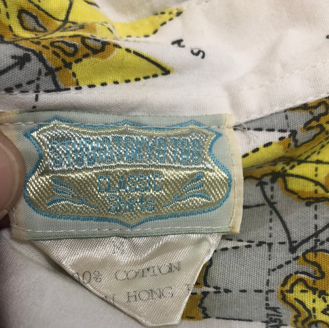Men’s Longsleeve White Shirt with Yellow maps of the oceans