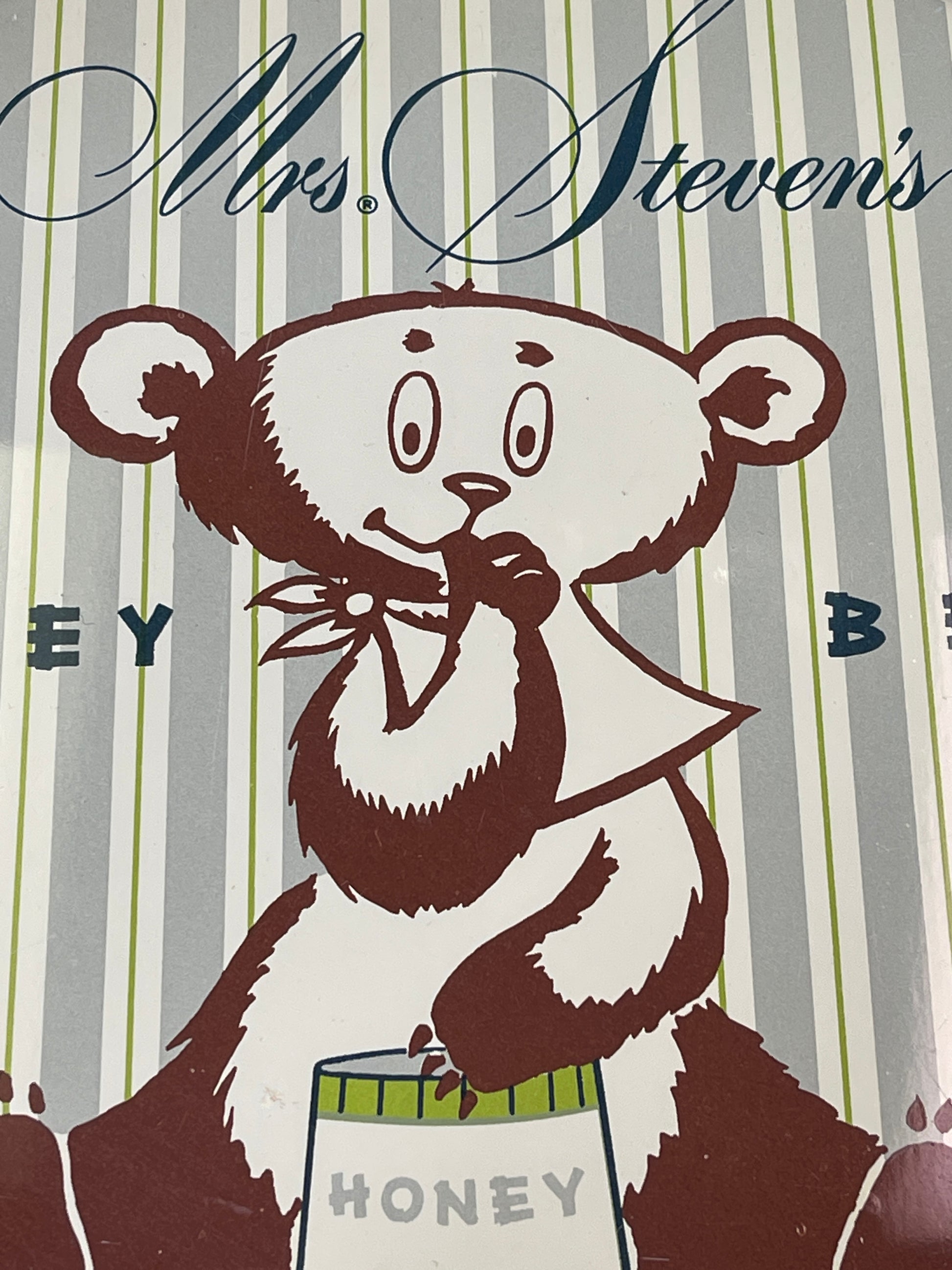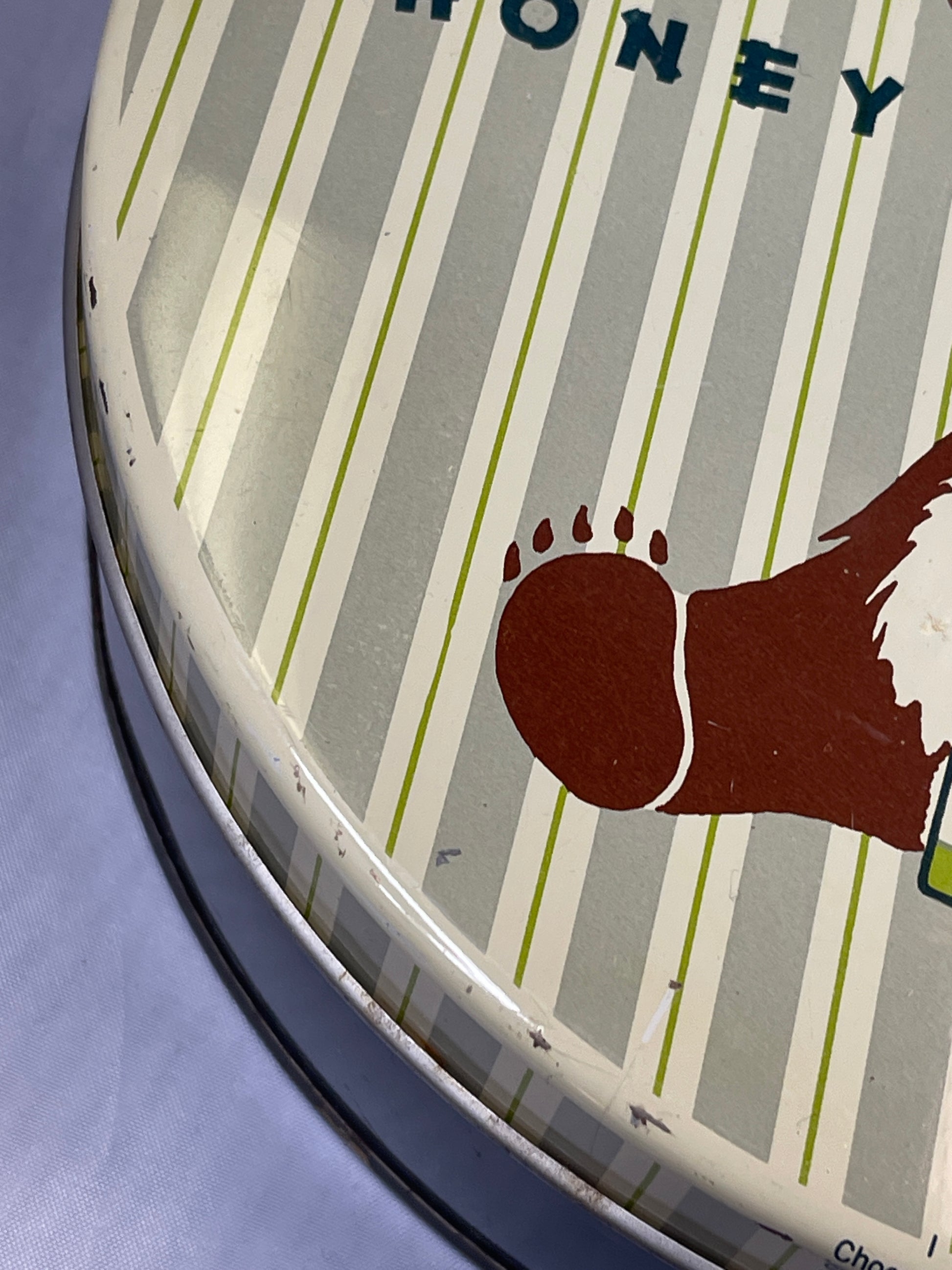 This adorably cute and charming Mrs Stevens Honey Bear Tin is in great condition. (No honey included, sorry!) Donning minor dings along the edges, this honey bear is still lovable and ready to fulfill your storage needs. Perfect for adding a touch of sweetness to any shelf or countertop.