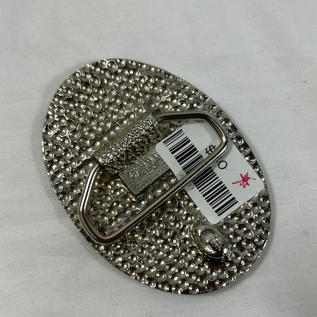 An absolutely stunning silver and turquoise belt buckle from S.S.I, with a bird on the front buckle made of turquoise and a different red gemstone. In excellent condition!