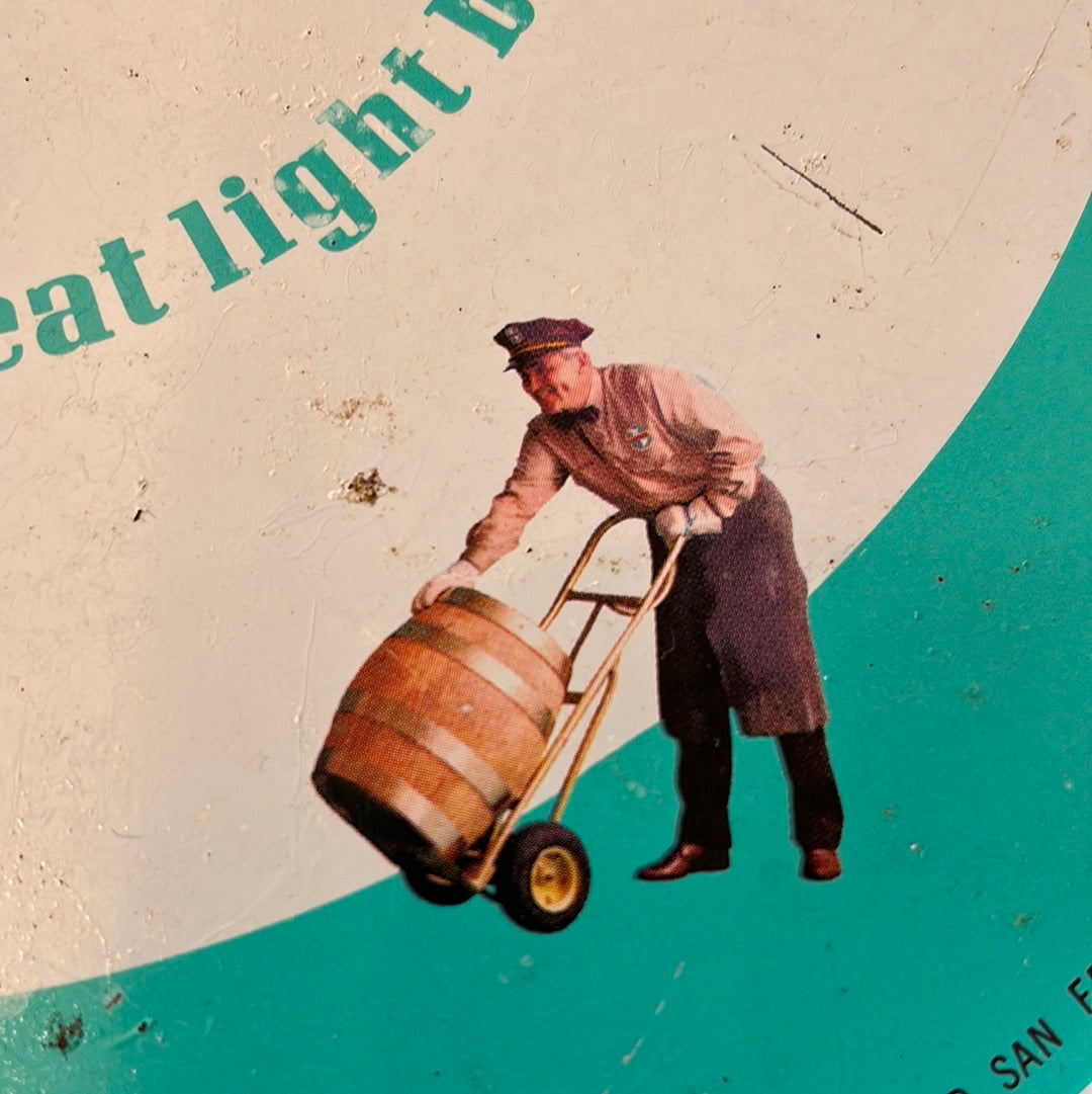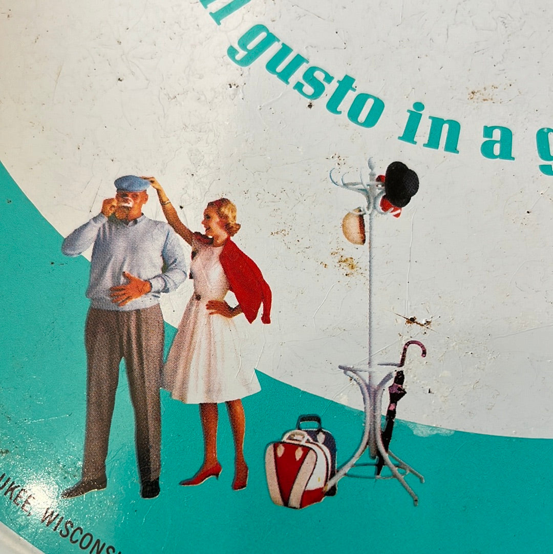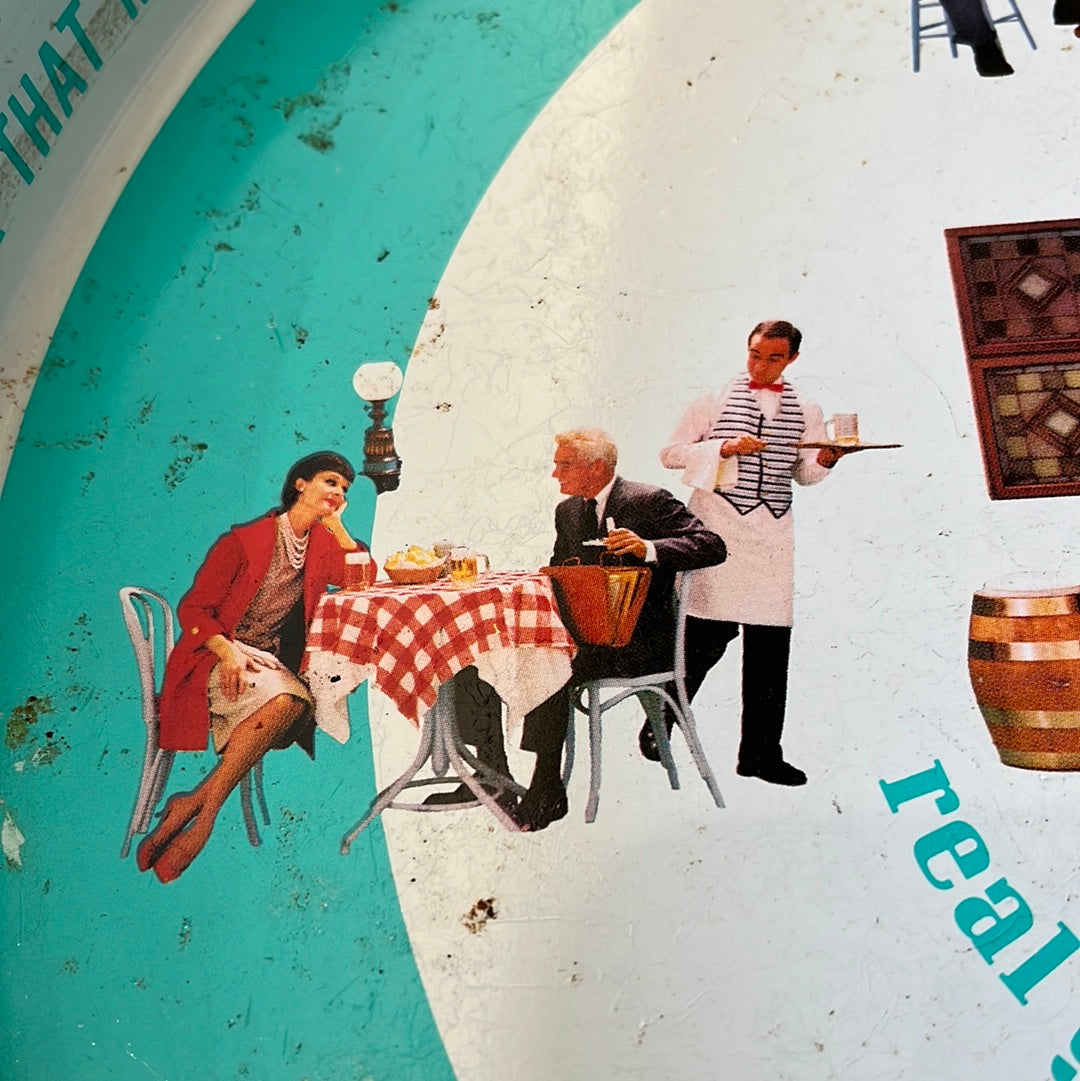 Round metal serving tray  with Schlitz logo.  Surface rust in spots.