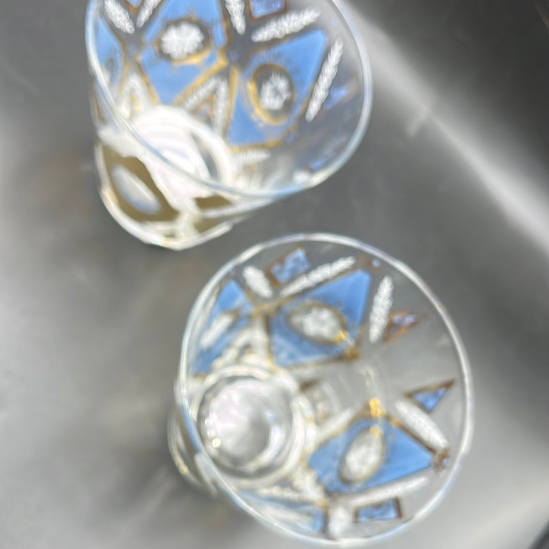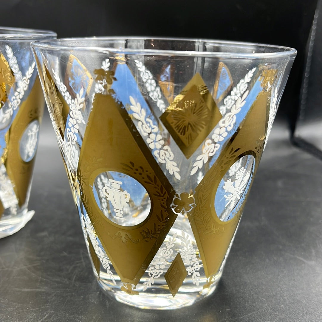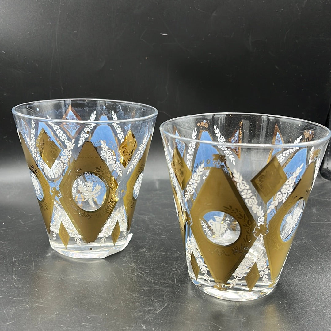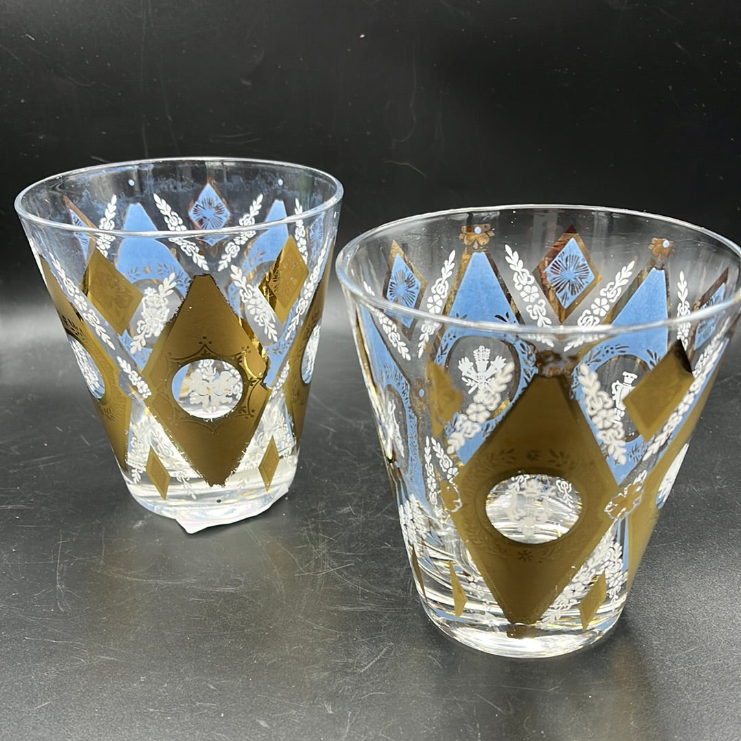 Gold and white diamond pattern with harps, cherubs, floral in the center of the diamonds.