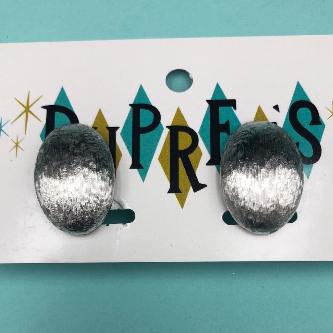 Silver Oval textured clip on earrings