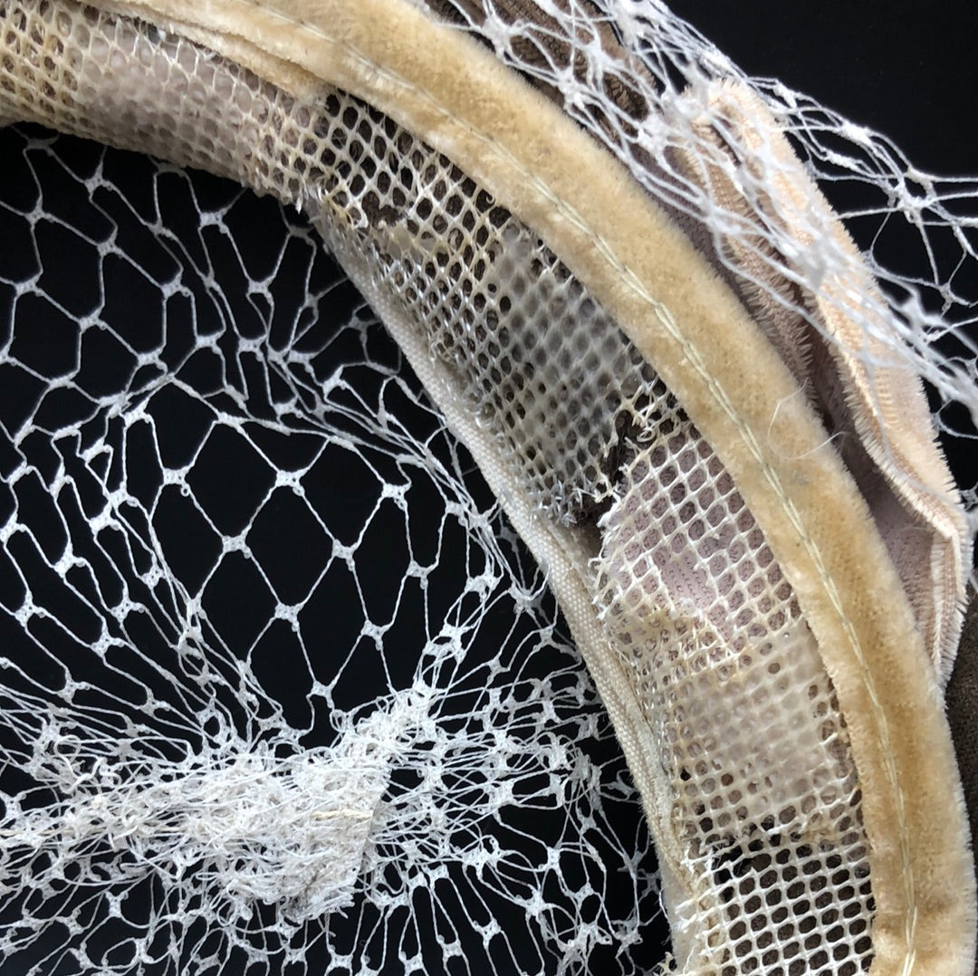 Taupe and Light Brown velvet hat with a beige net