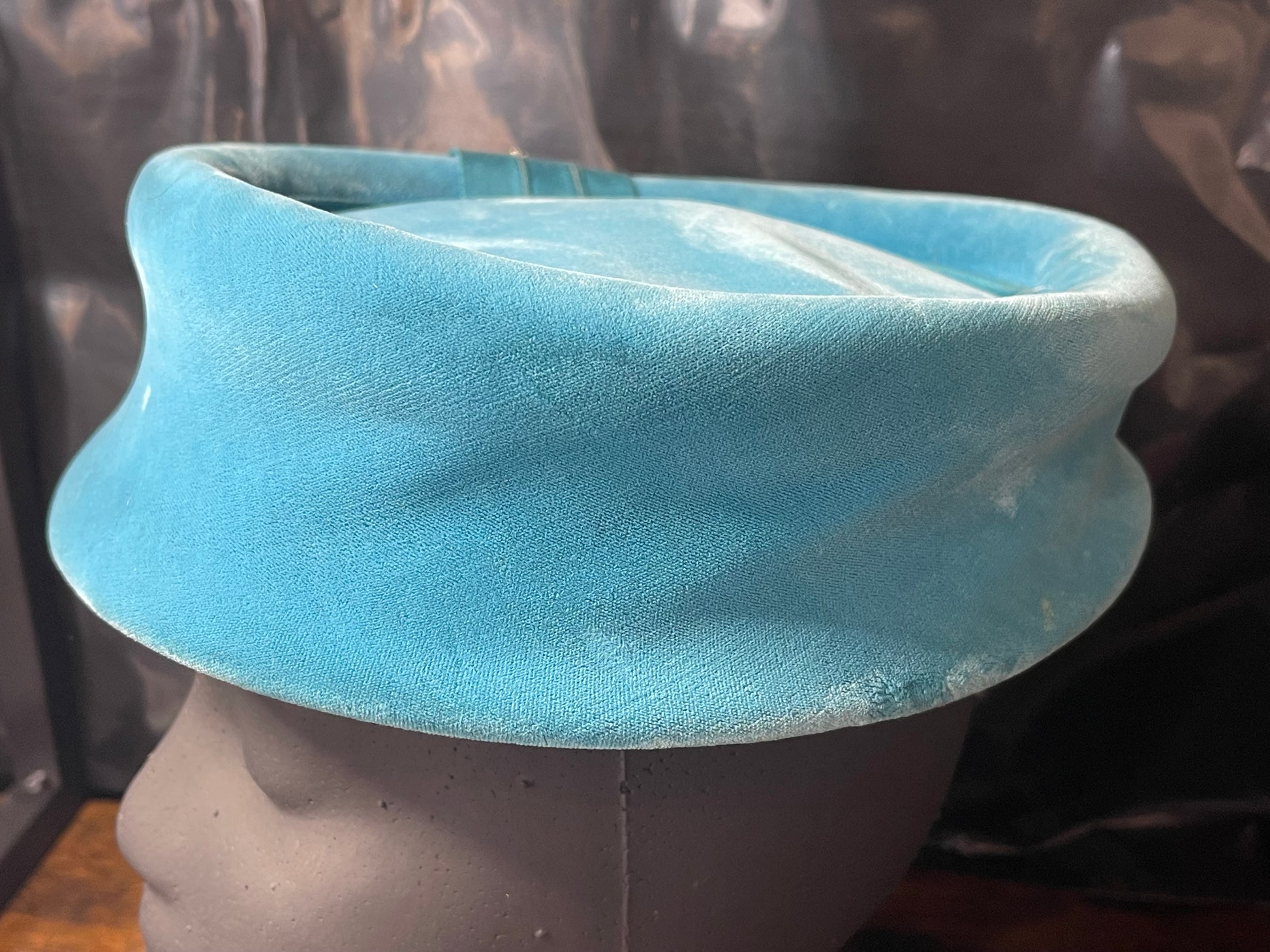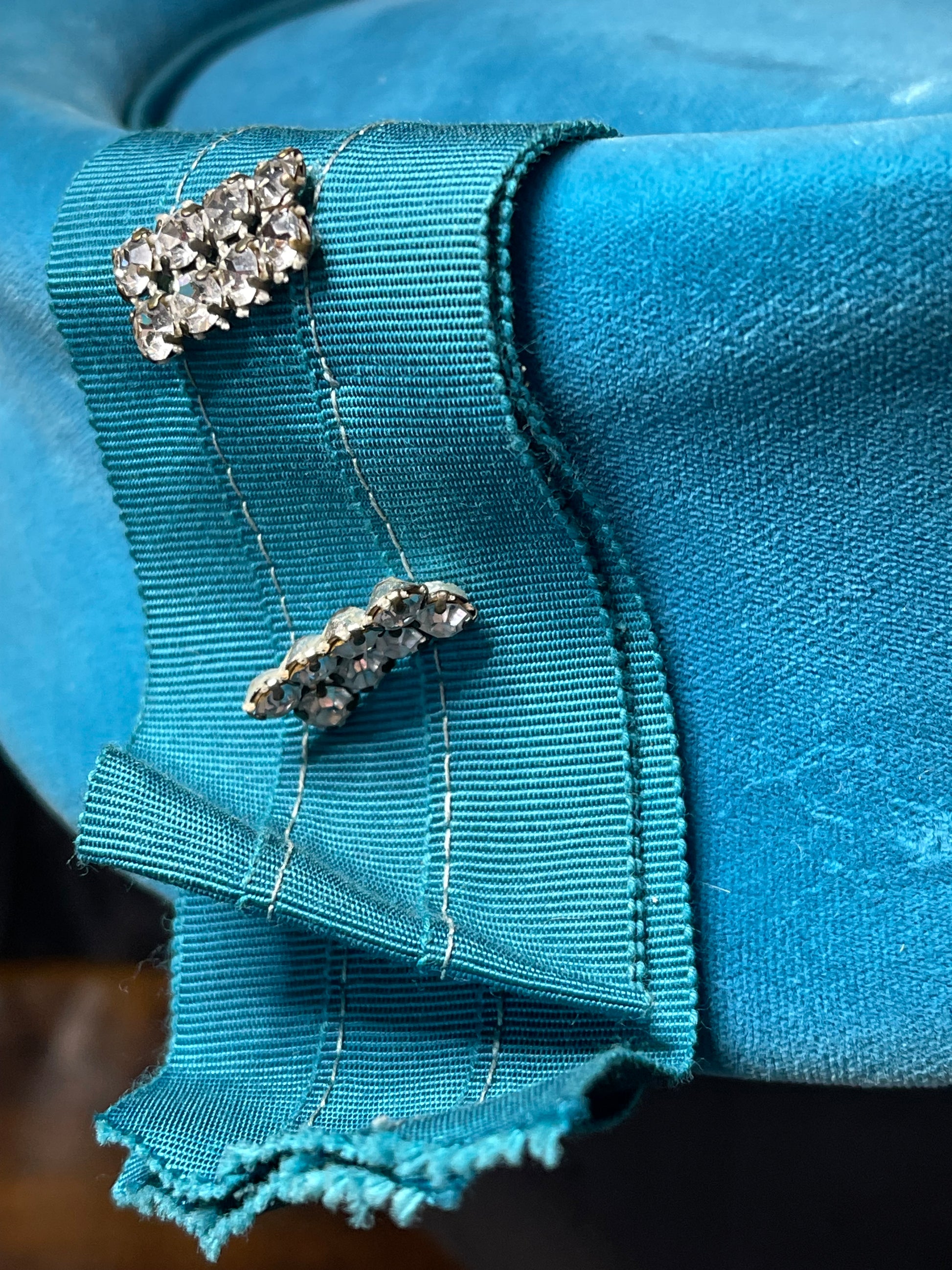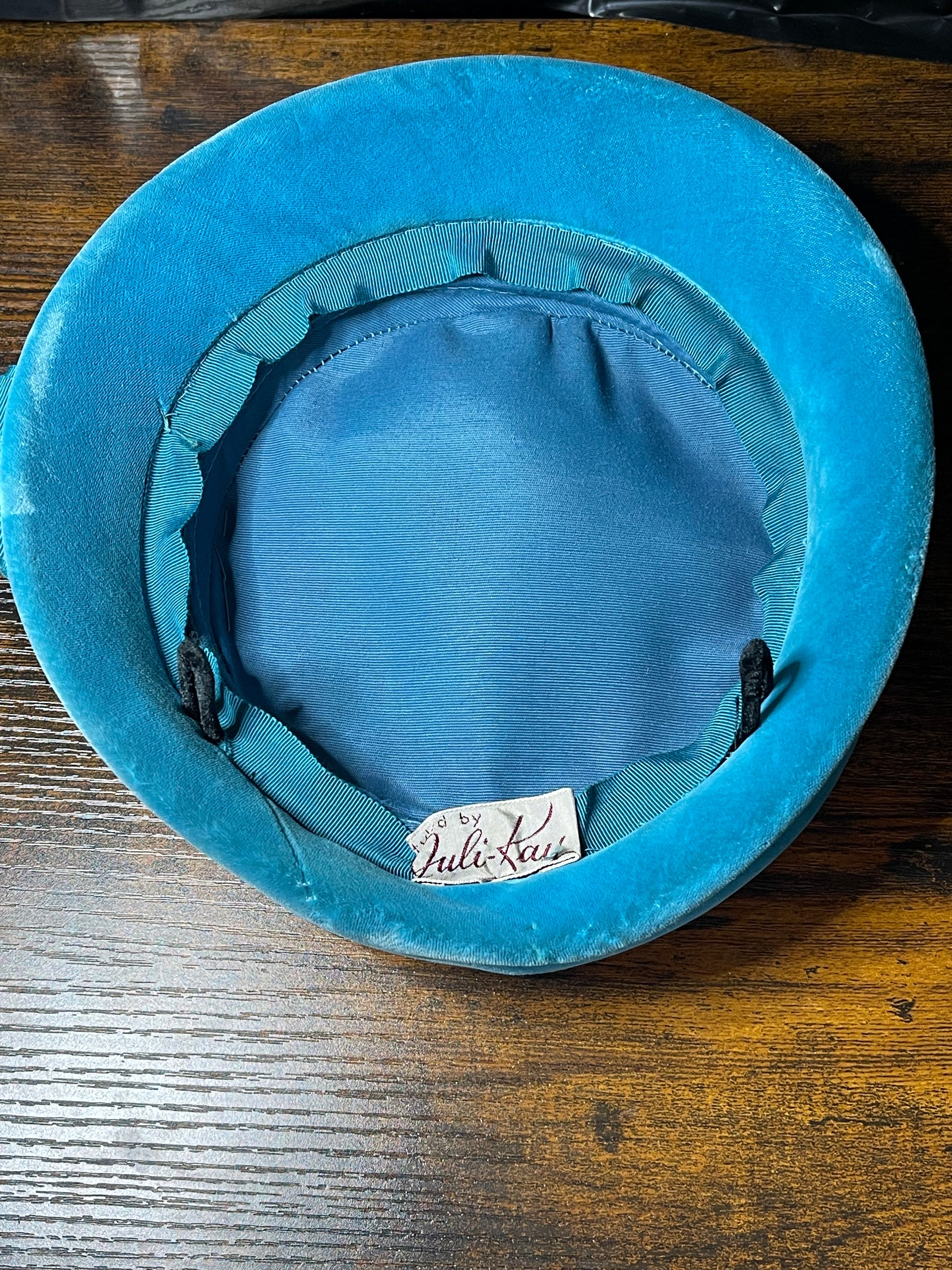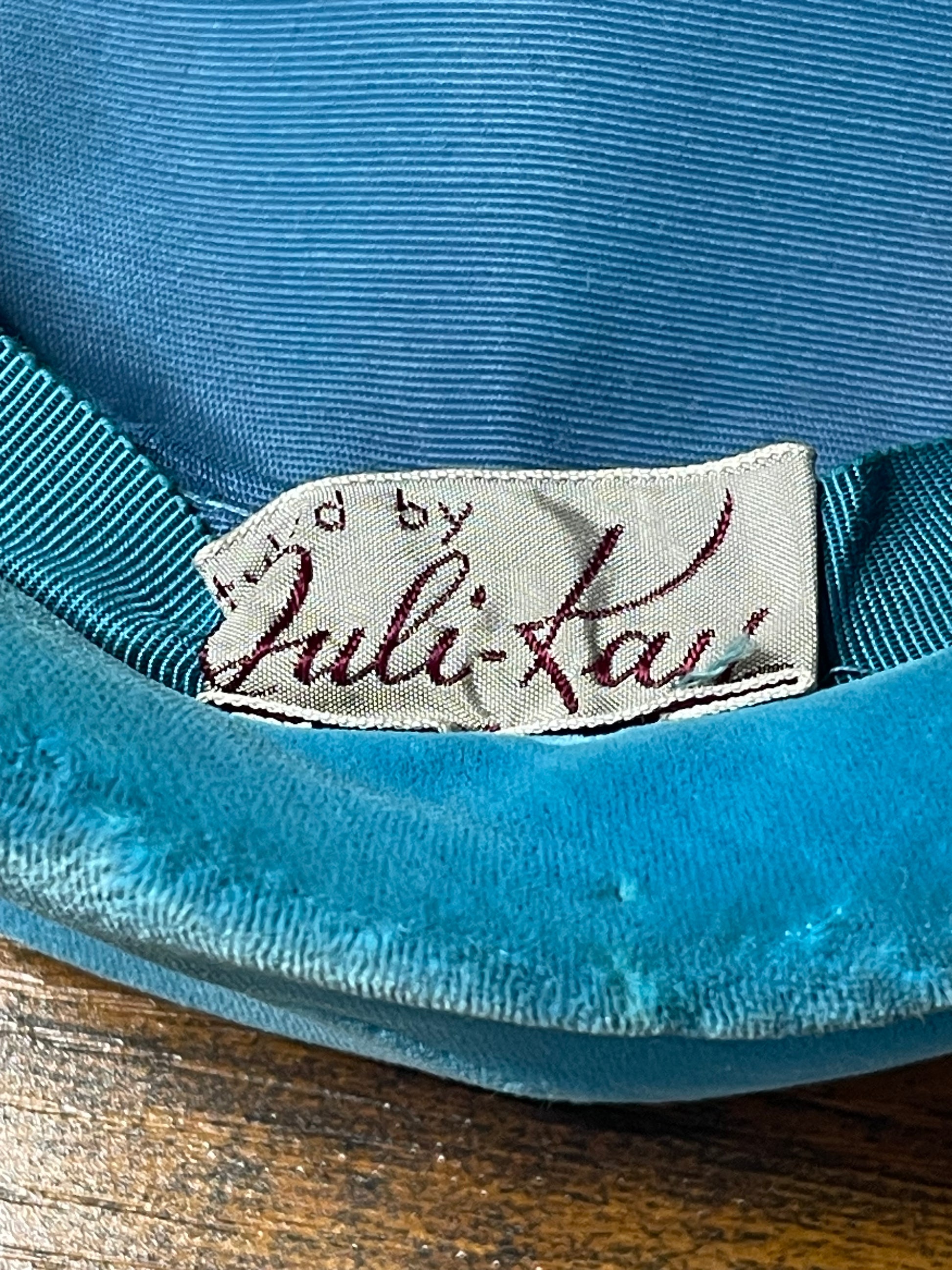 Teal Velvet Pillbox Hat with Rhinestone Accents
