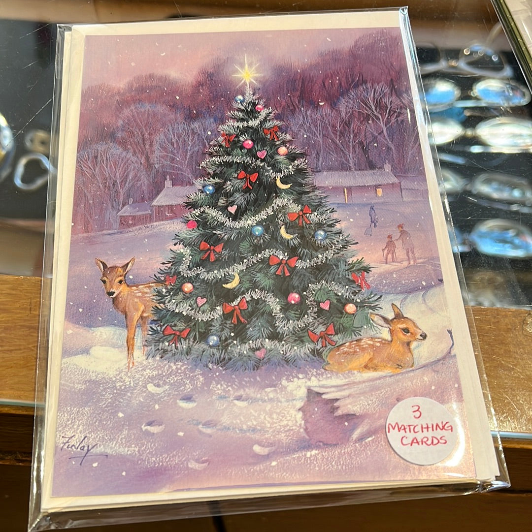 Tree and wildlife holiday card three pack