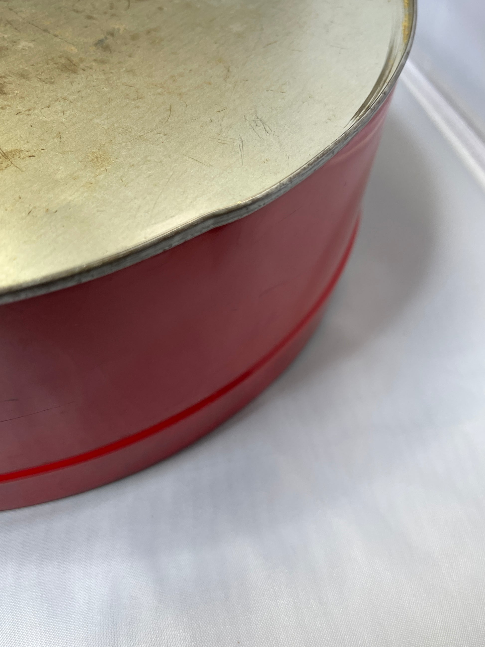 Add a touch of nostalgia to your holiday decor with our Vintage Christmas Tin. Featuring a classic winter scene, this tin will bring a cozy and charming vibe to any space. Don't worry about minor dings and dents, they just add to its vintage charm.
