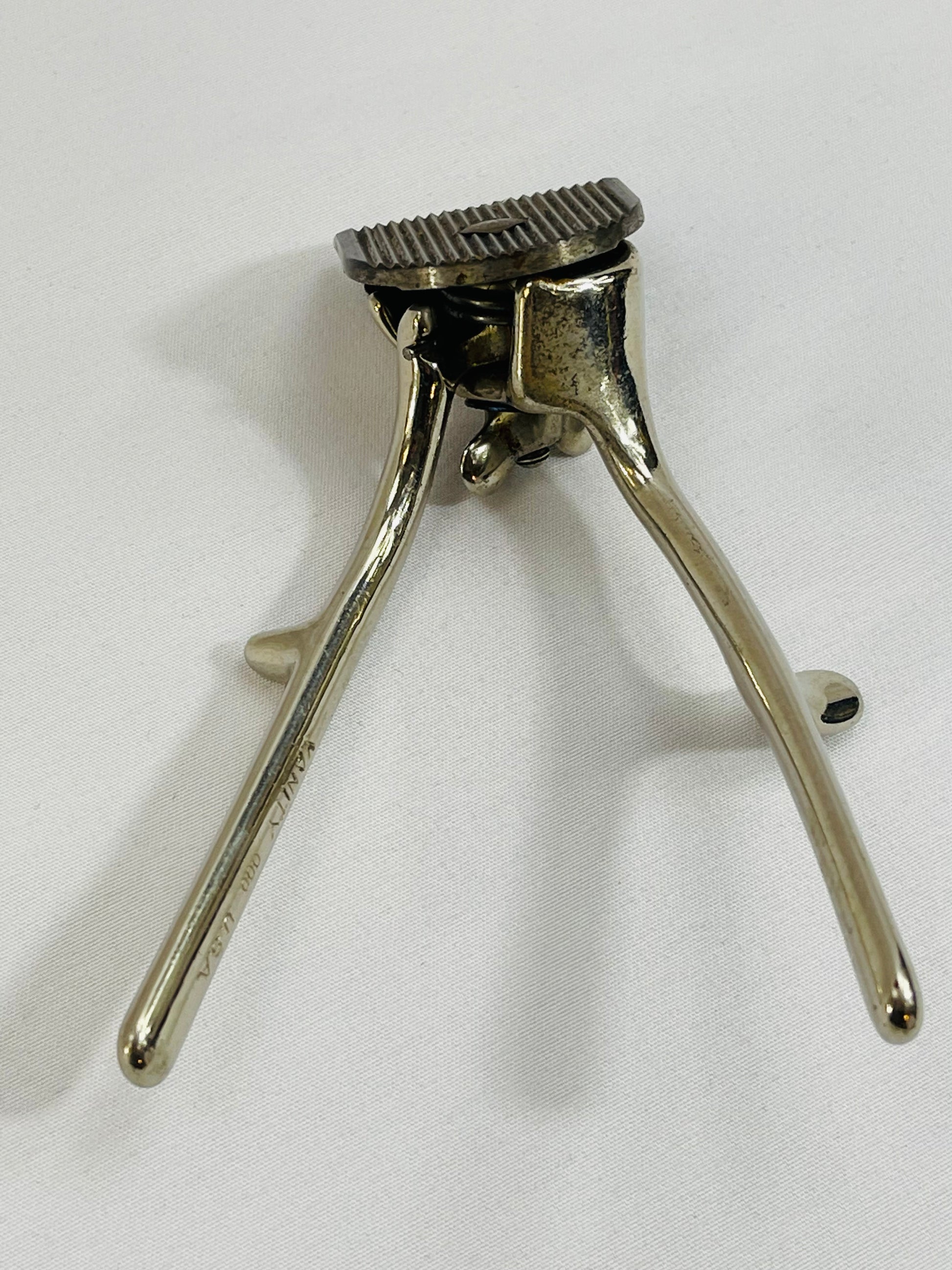 This vintage mechanical hair clipper is a rare find! It is made of silver tone metal from Vanity brand in good condition. A perfect tool for the stylish, modern-day trimmer. Enjoy a quick and easy cut every time!