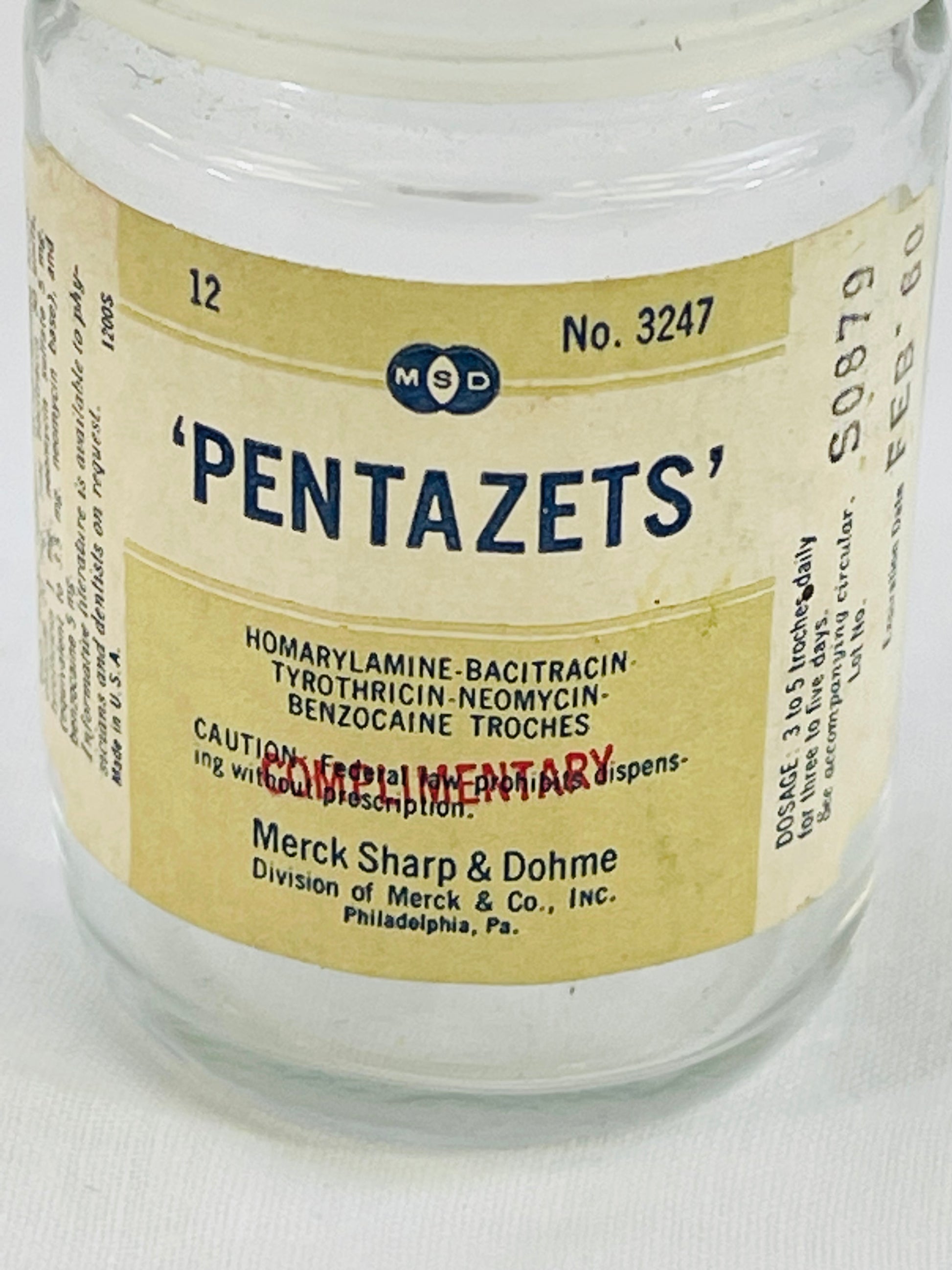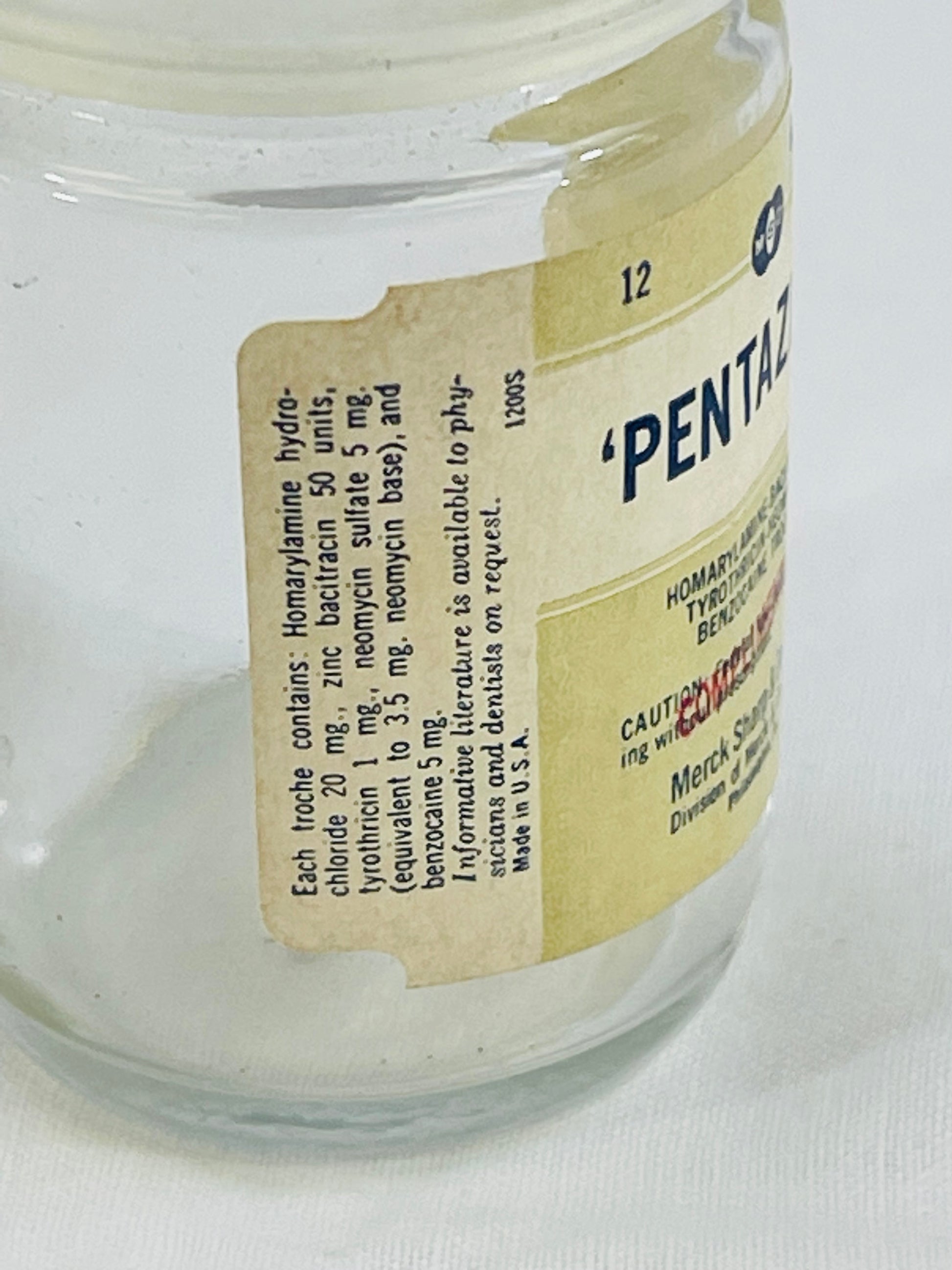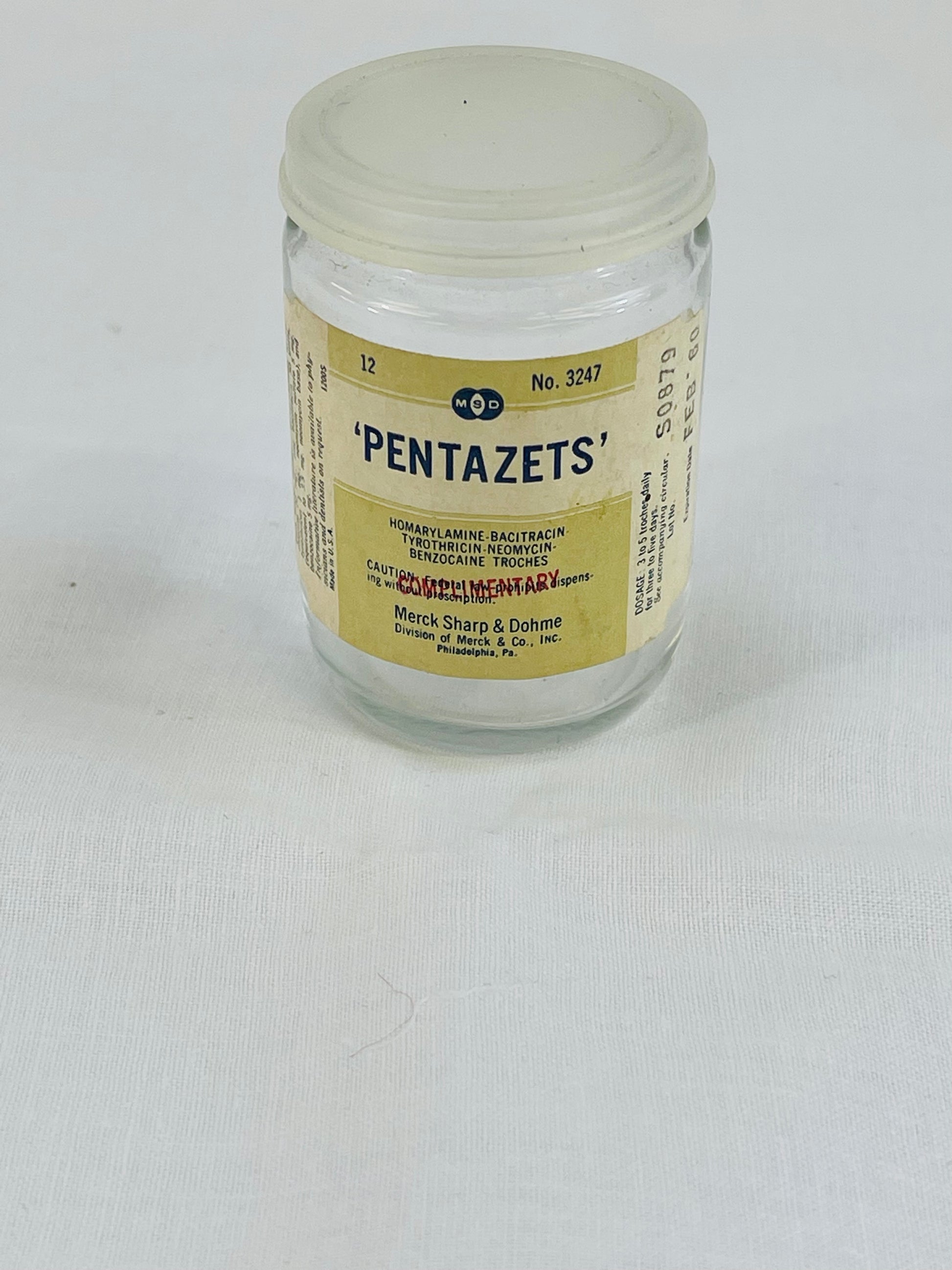 Small glass Pentazets jar with plastic lid. Expiration date on jar is February of 1960. They came from the estate of a former nurse and would make a great gift for a current nurse!