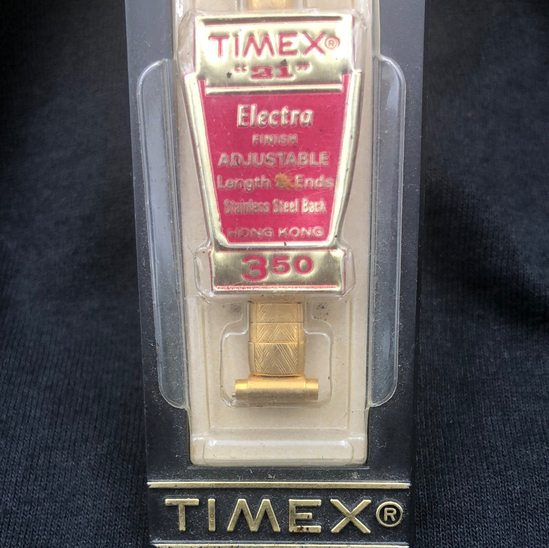 Gold Timex L33A Electra finished adjustable length watch band in original package.
