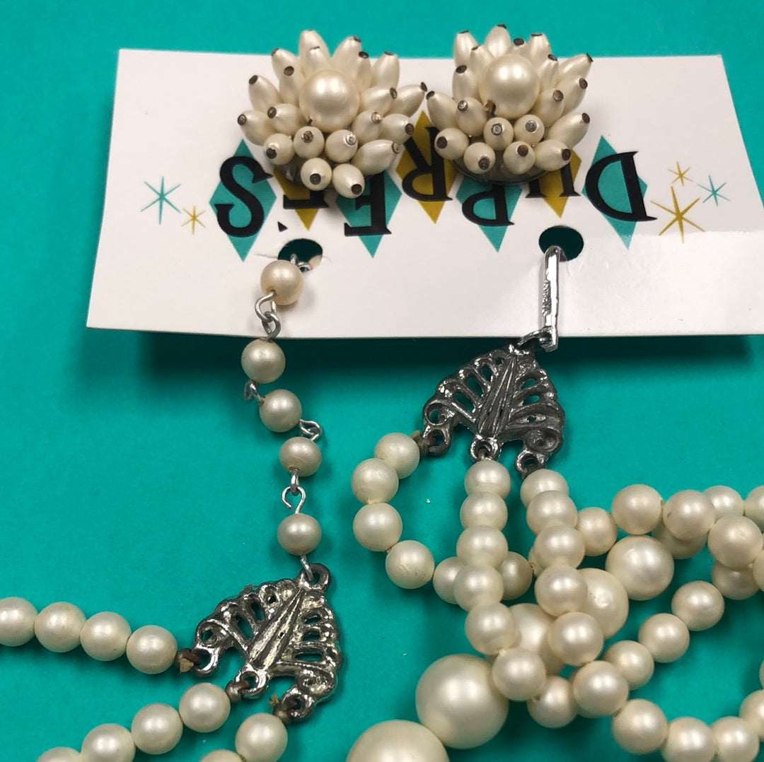 14" 3 strand faux Pearl necklace with clip on earrings to match