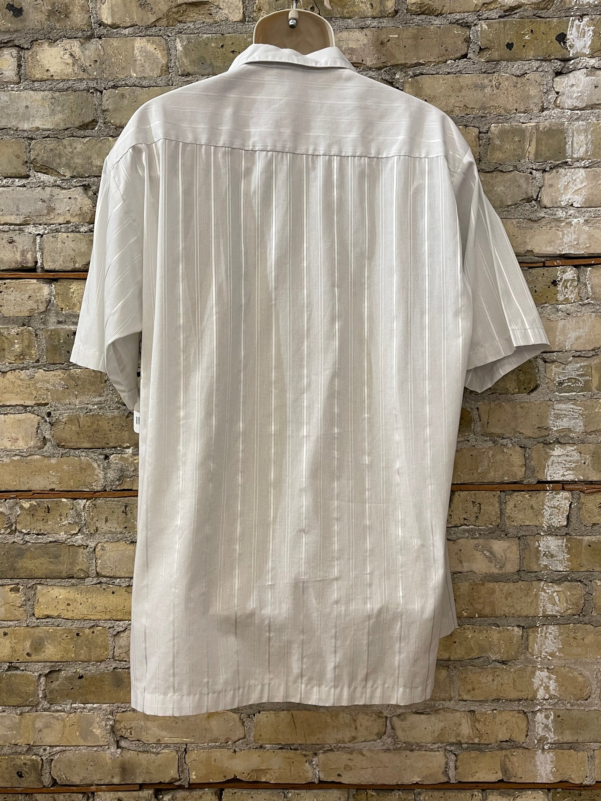 Introducing a timeless wardrobe staple - the White Monochrome Striped Shirt from Triumph. This stylish short sleeve shirt is perfect for any occasion, from work to weekend. Available in size XL Tall, this timeless shirt will have you looking your best, no matter the event! Get yours today!!