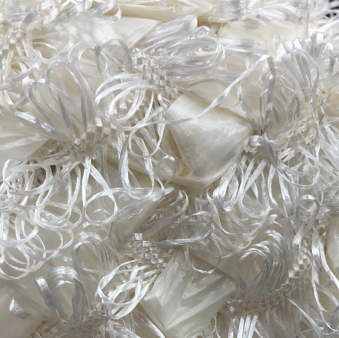 White textured hat with a thin black velvet edge. A Chandra Original
